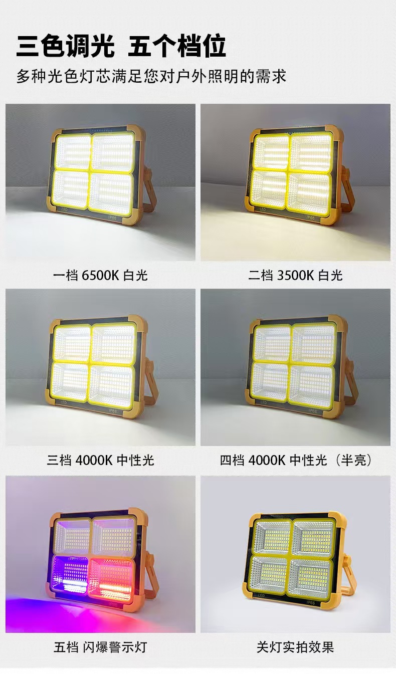 跨境太阳能应急工作灯超亮摆摊夜市灯便携式户外露营照明投光灯