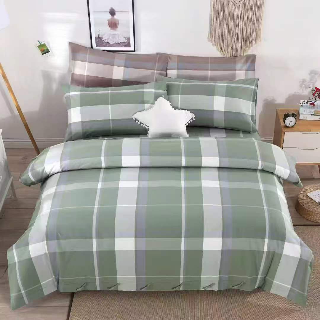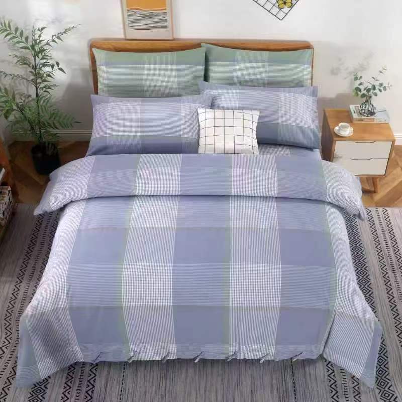 精梳全棉老粗布四件套床上用品家用民宿纯棉条纹被套双人床单枕套