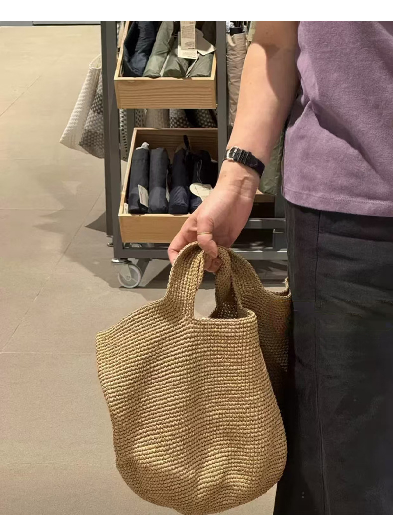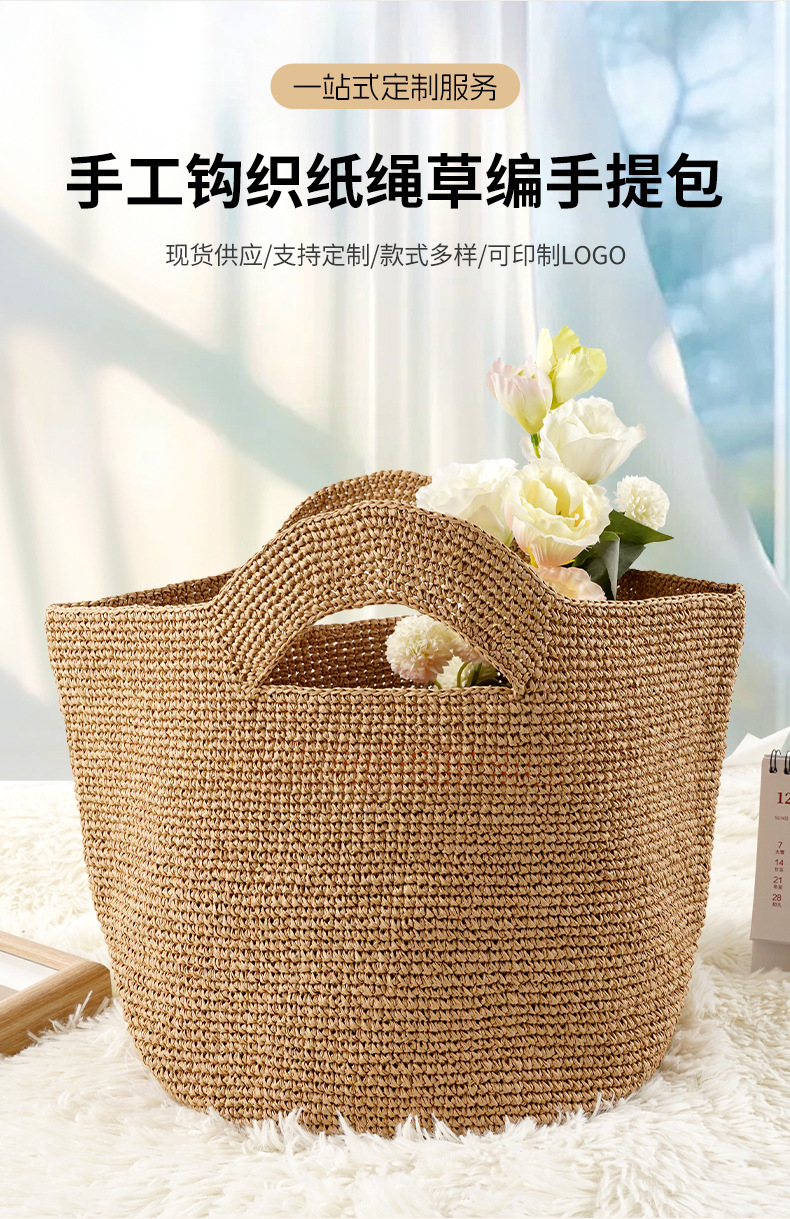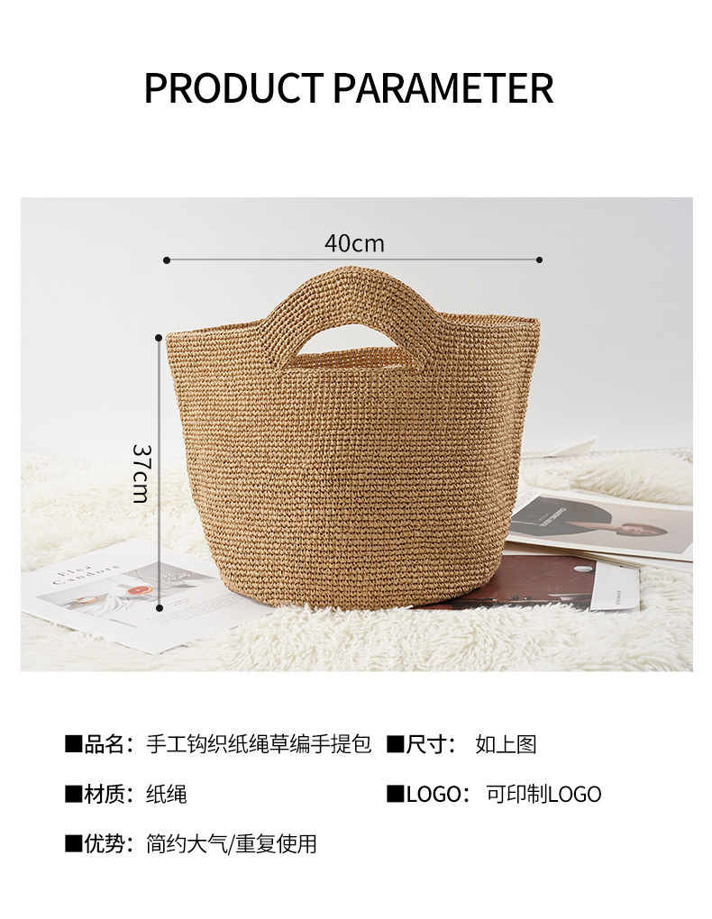 手工编织草编包女式手提沙滩包夏季海边度假大容量透气透气轻盈
