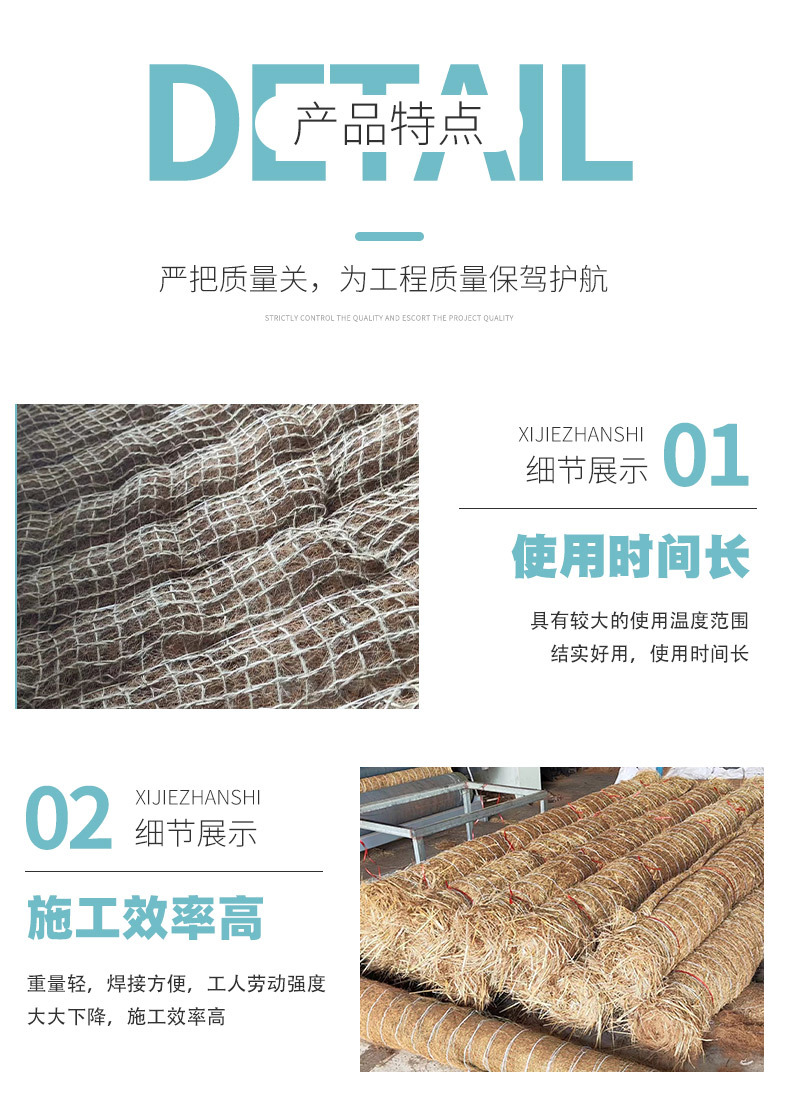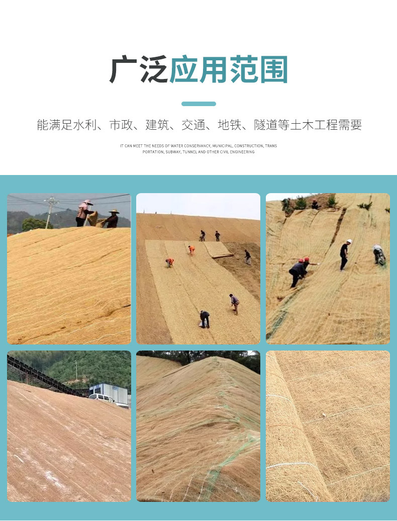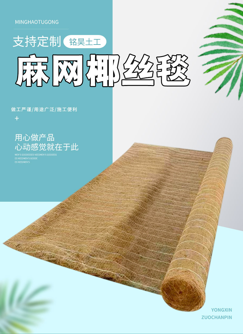 椰丝毯生态绿化加筋抗冲草籽毯生态护坡河道绿化护坡麻网椰丝毯