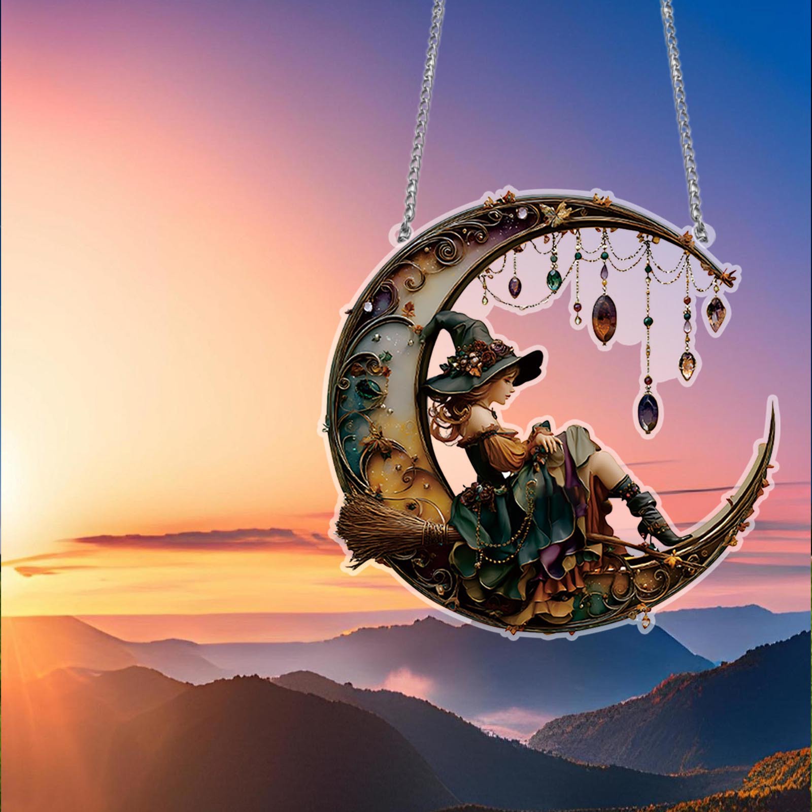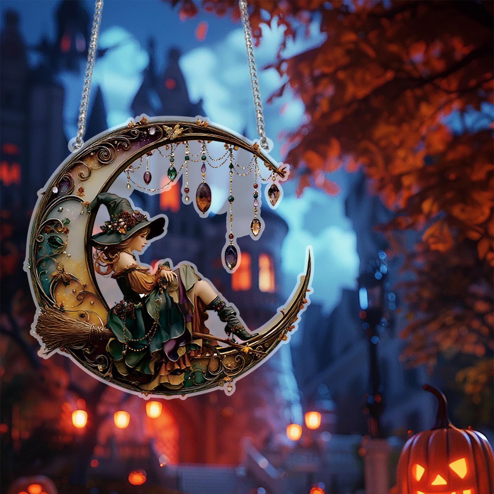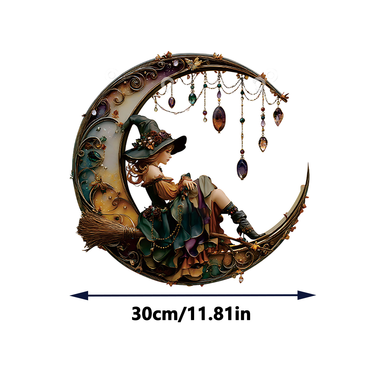 跨境热销万圣节女巫装饰品橱挂件户外场景布女巫亚克力挂饰