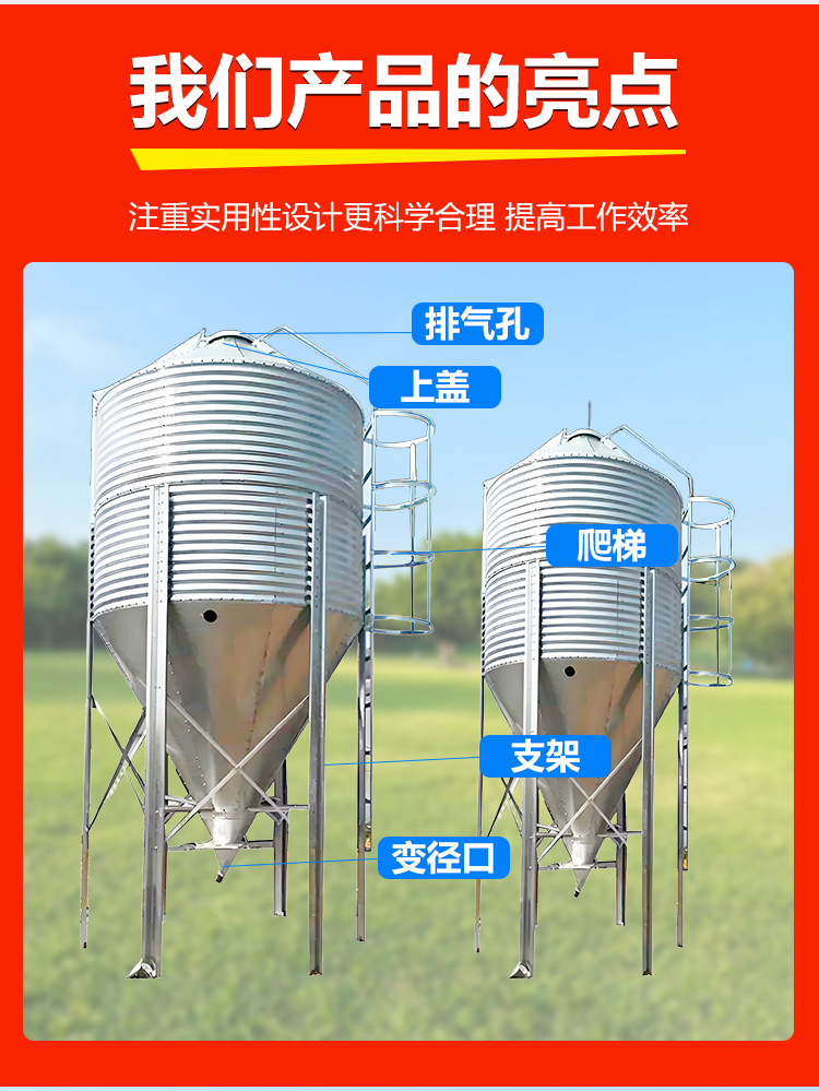 养殖料塔定量上食不锈钢养殖场自动化养殖大容量储存饲料养殖料塔