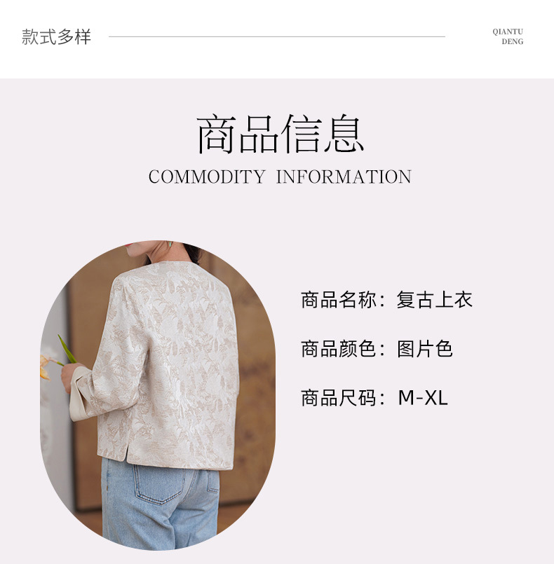 新款新中式国潮提花汉服外套民族风显瘦长袖上衣圆领盘扣开衫唐装,批发价,价格:115,厂家直销,新款新中式国潮提花汉服外套民族风显瘦长袖上衣圆领盘扣开衫唐装,免费拿样。