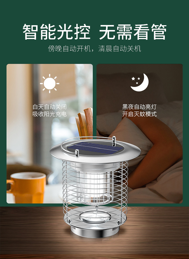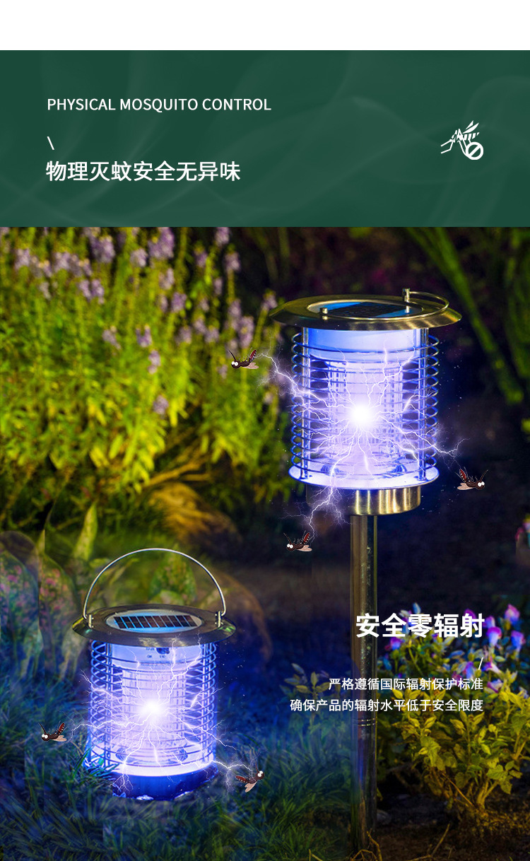 太阳能led灭蚊灯家用庭院紫光灭蚊器户外防水草坪灯智能照明灯具