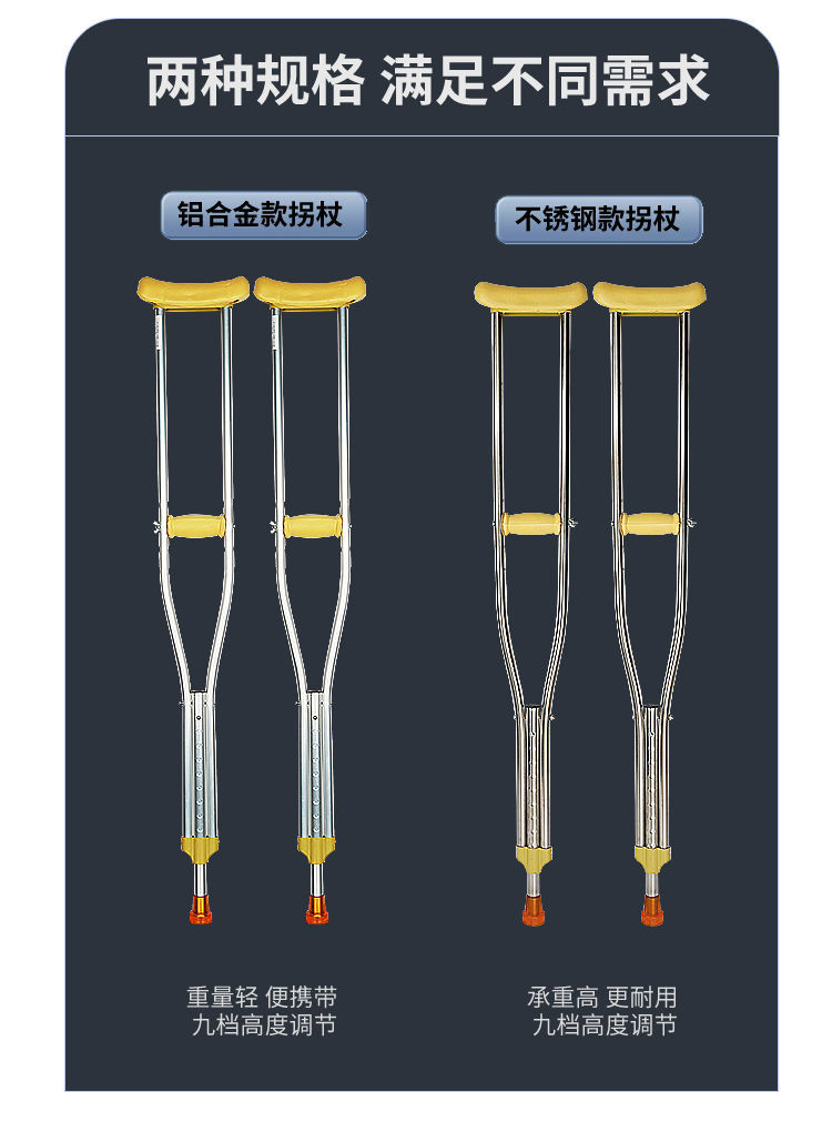加厚不锈钢拐杖老人腋下拐残疾人双拐伸缩可调节腋下拐减震不锈钢
