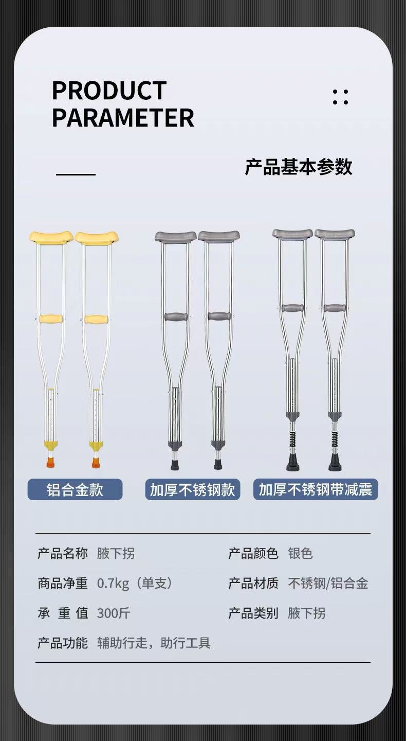 病人防滑助行器防滑双拐残疾老人医用可调节腋下拐杖骨折腋下拐