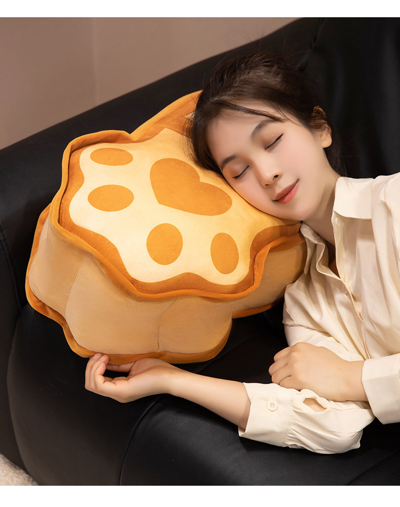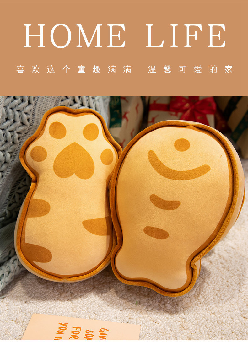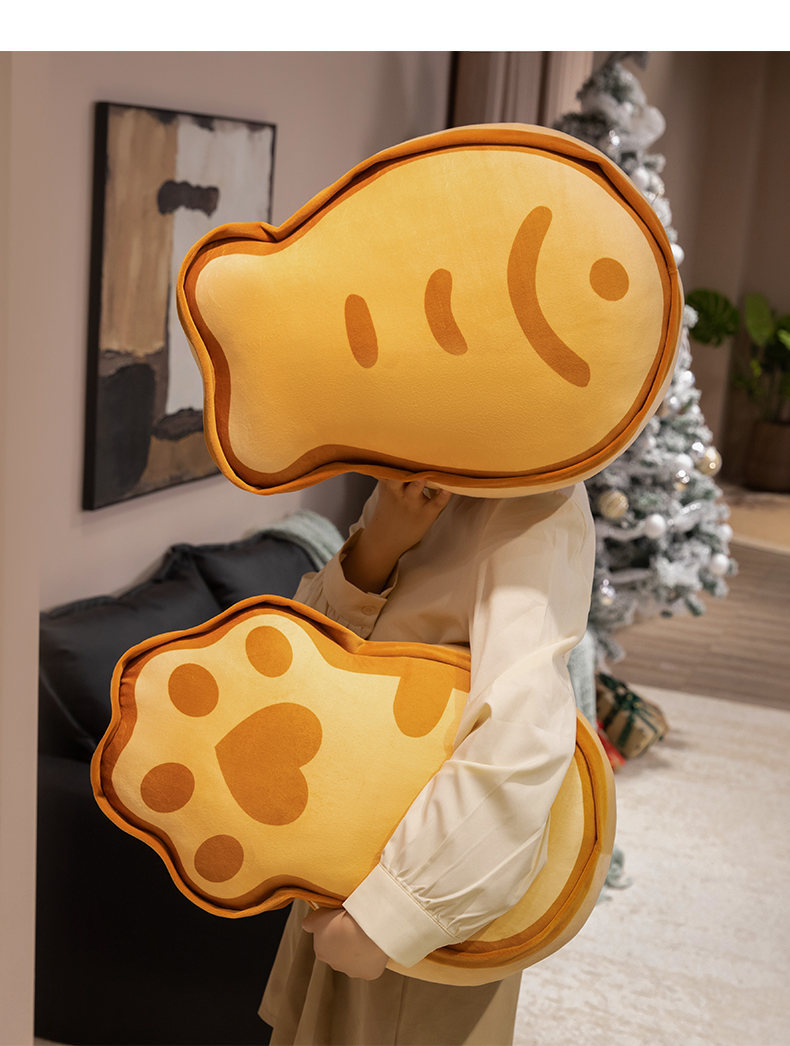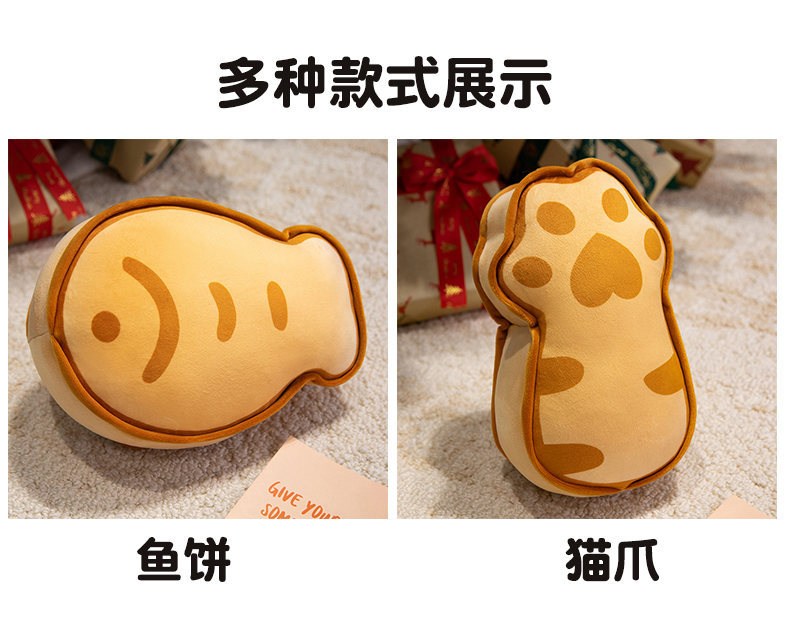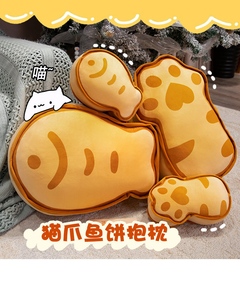 黄油饼干猫咪猫爪鱼饼抱枕虎皮毛绒玩具解压抱枕女生睡觉超软靠枕