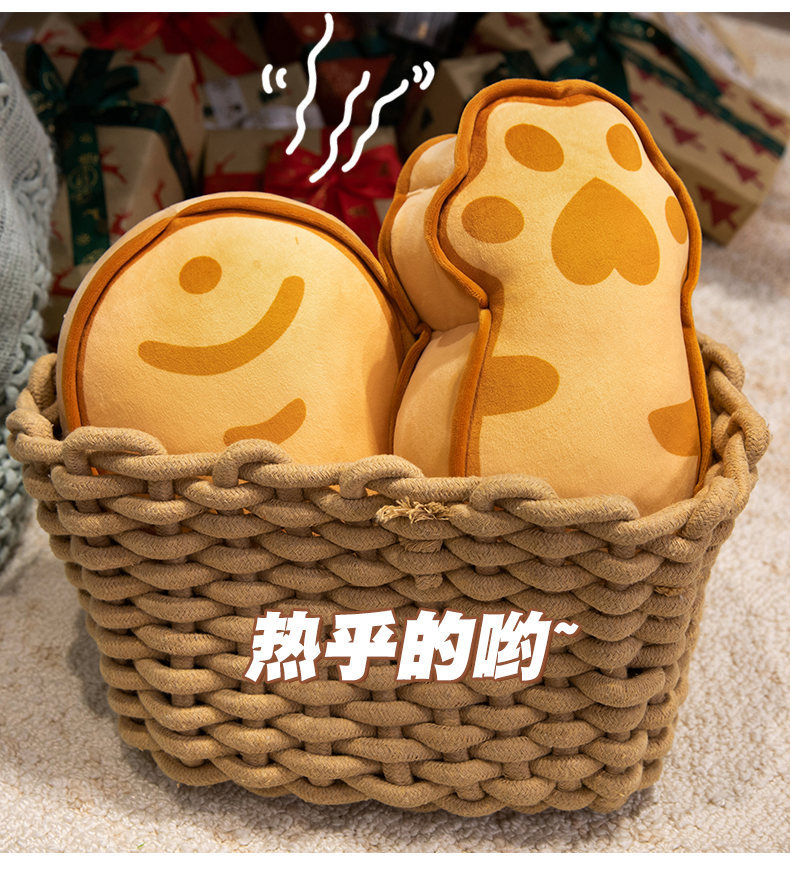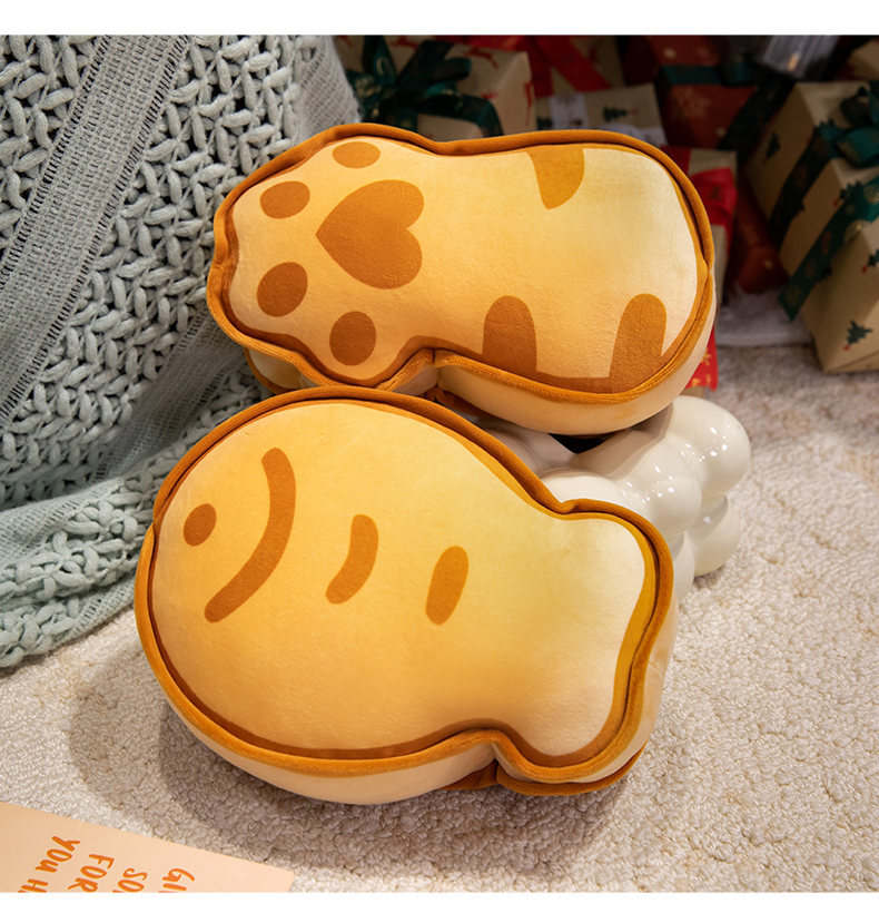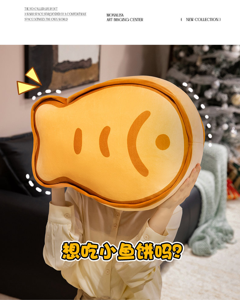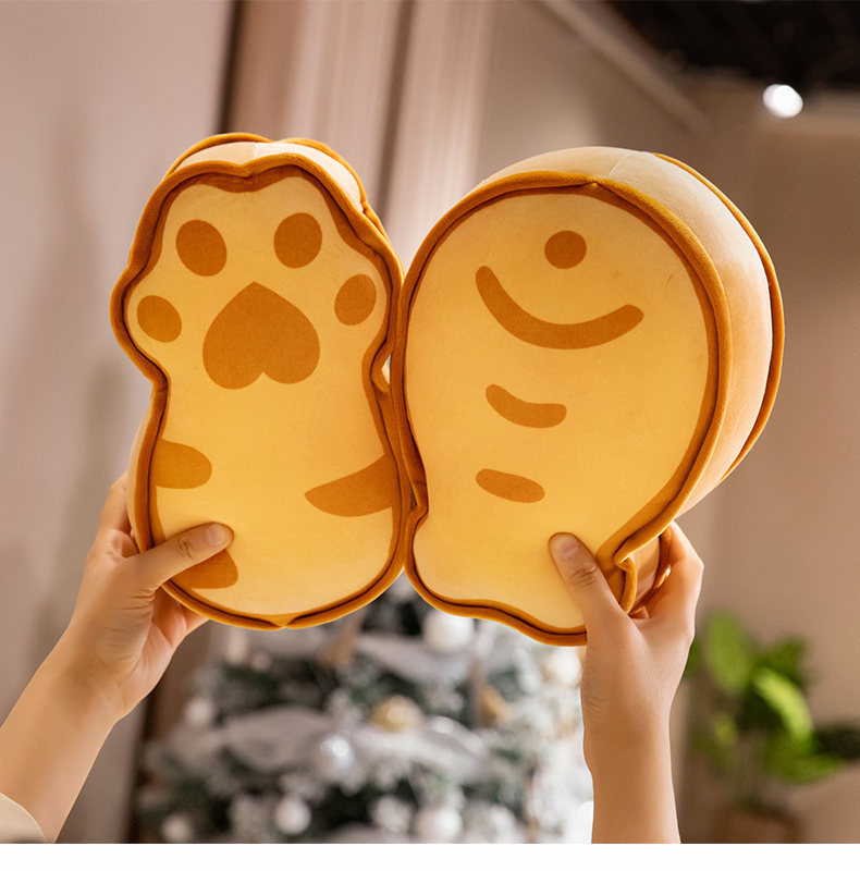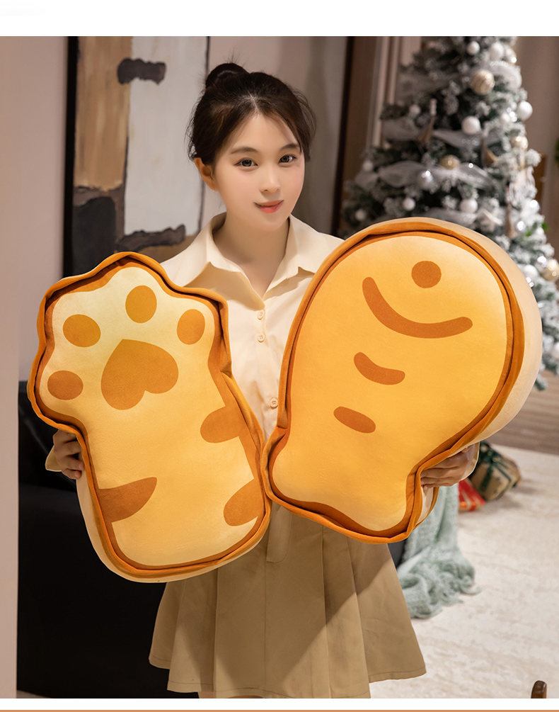 黄油饼干猫咪猫爪鱼饼抱枕虎皮毛绒玩具解压抱枕女生睡觉超软靠枕
