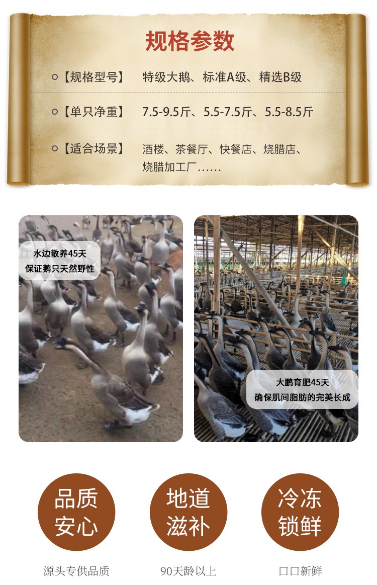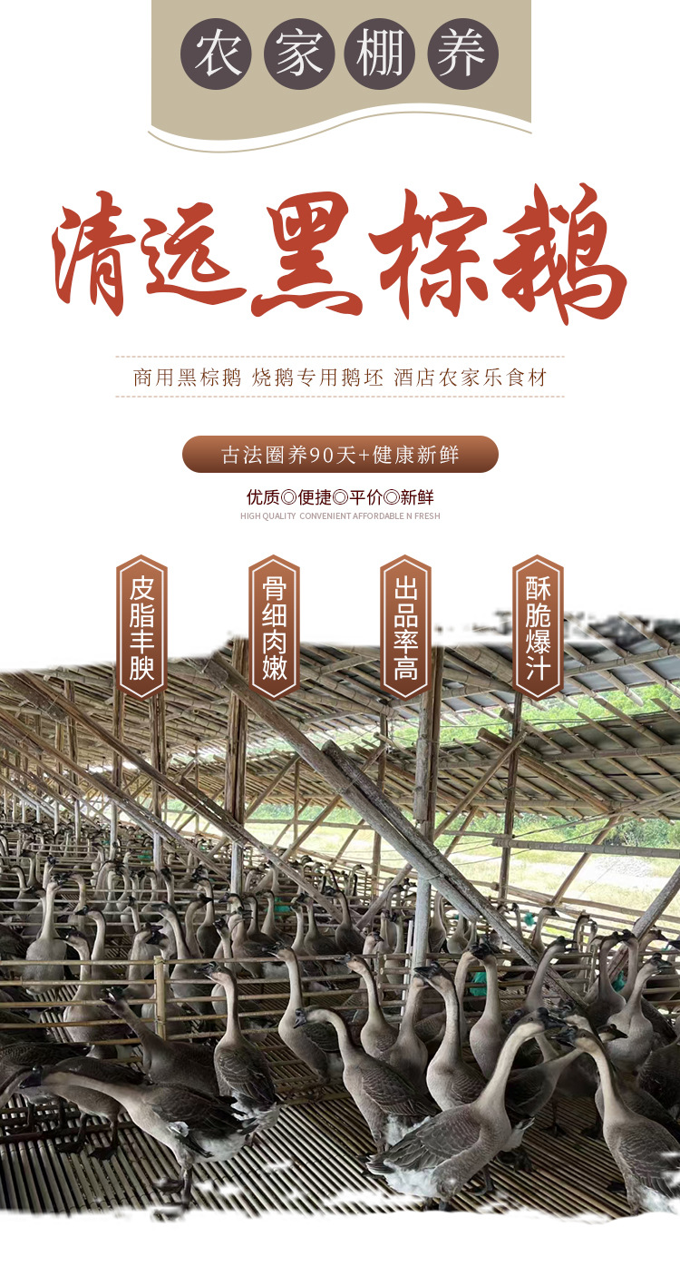 广东清远棕鹅棚鹅肉现杀酒席酒店烧腊茶餐厅烧鹅原材料白条黑棕