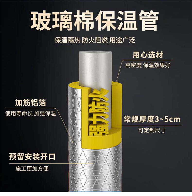 玻璃棉保温管蒸汽管道蒸汽保温管道隔热棉防火铝箔棉管玻璃棉管壳