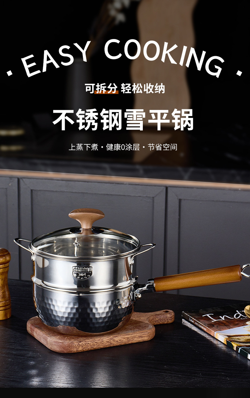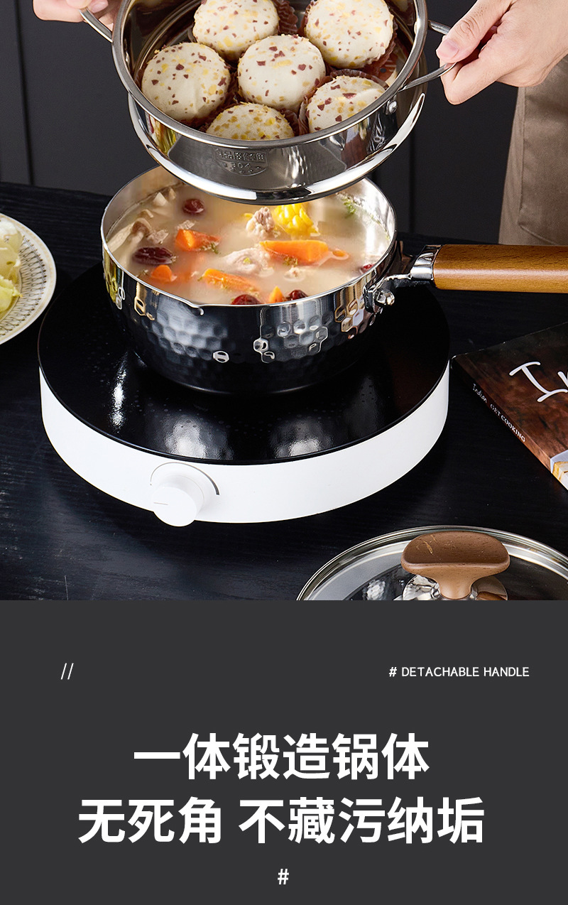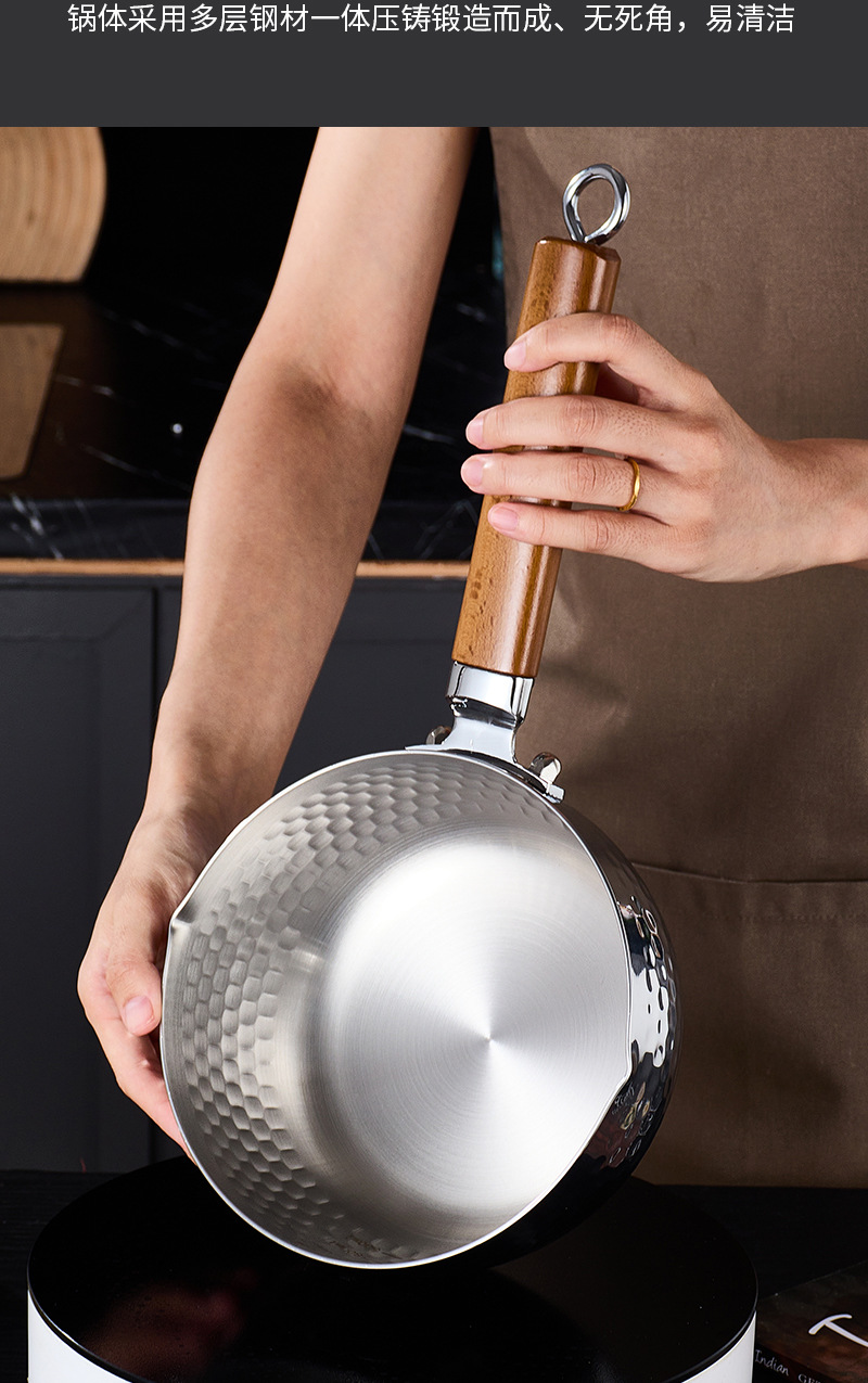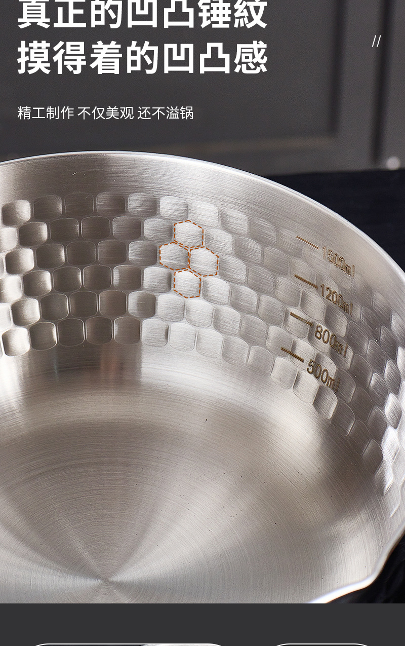 新款多功能复古手柄·304钢雪平锅日式奶锅婴儿家用辅食锅锤纹奶