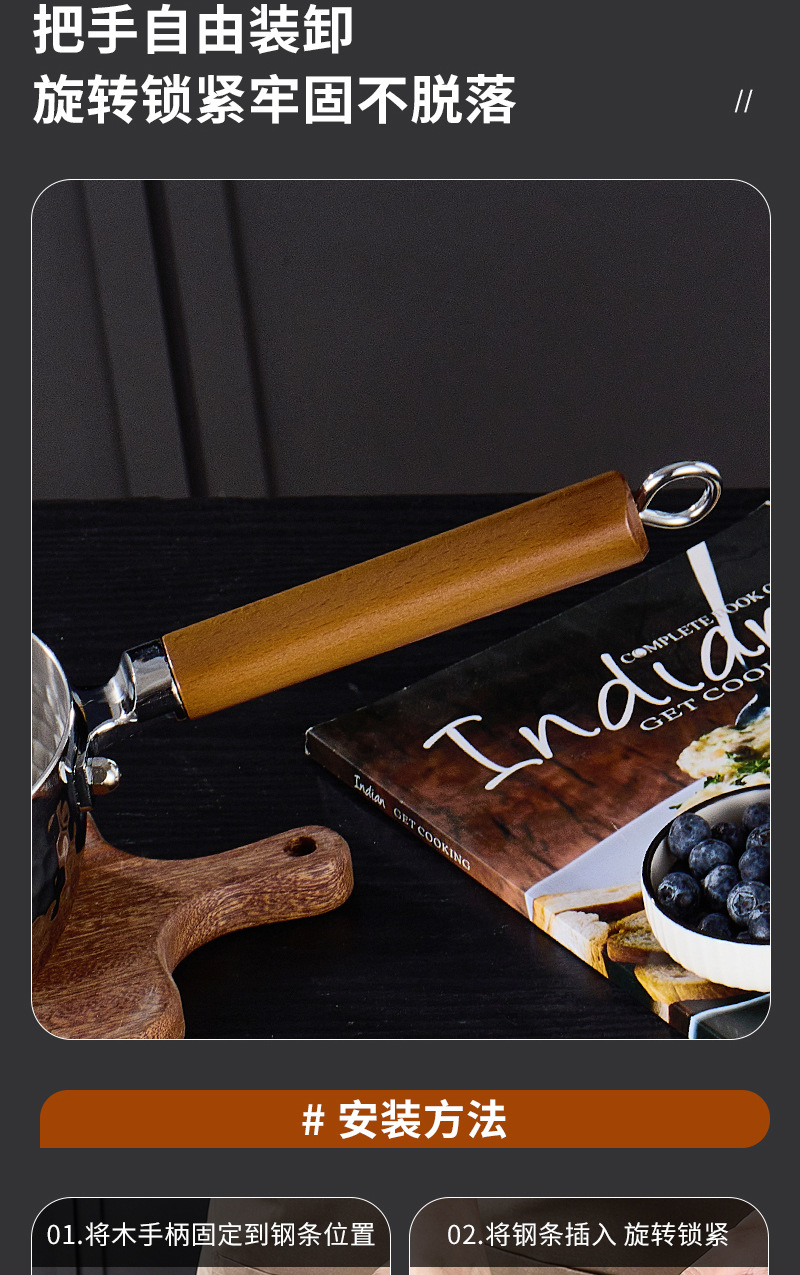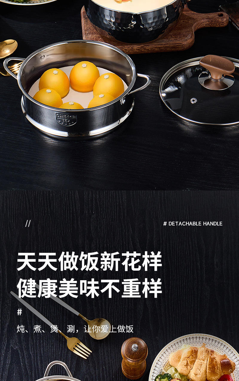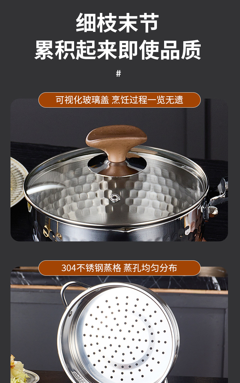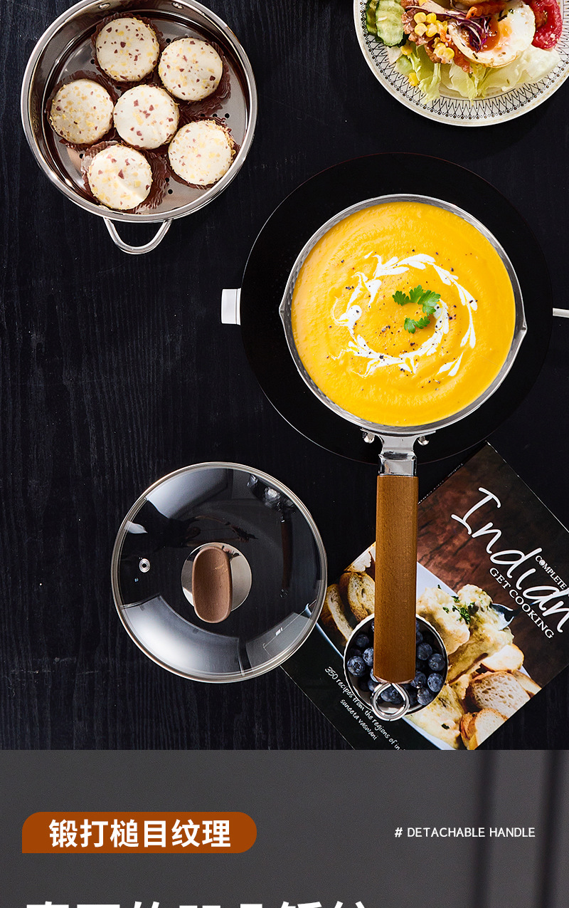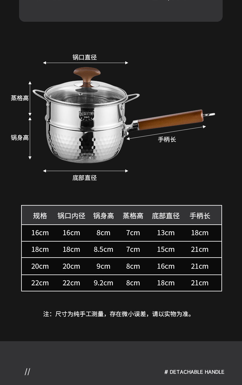新款多功能复古手柄·304钢雪平锅日式奶锅婴儿家用辅食锅锤纹奶