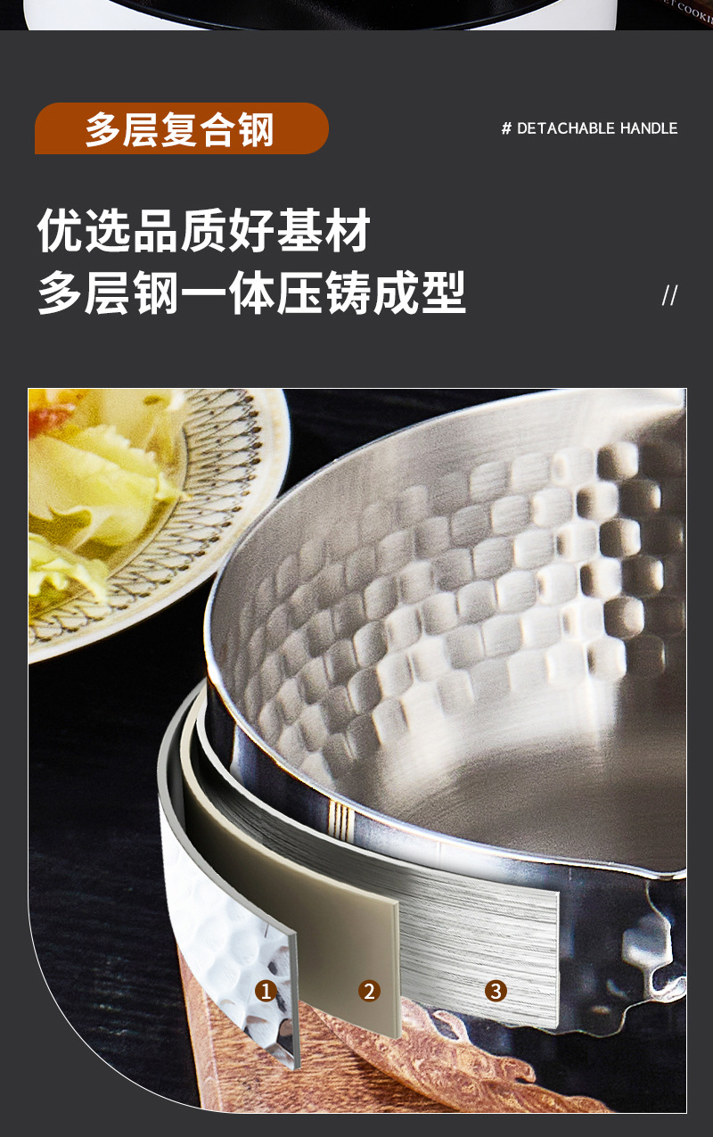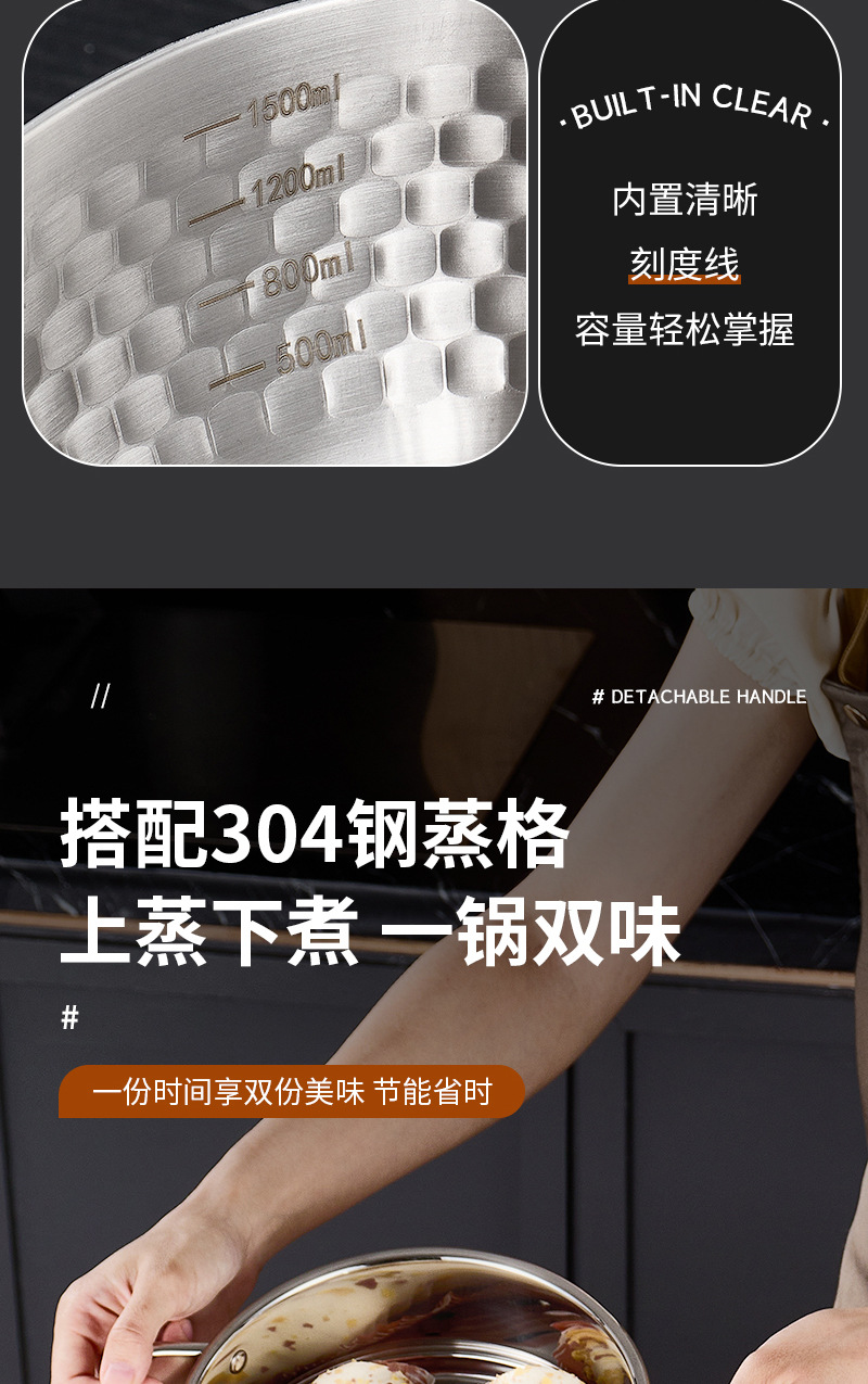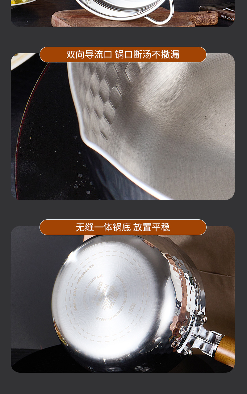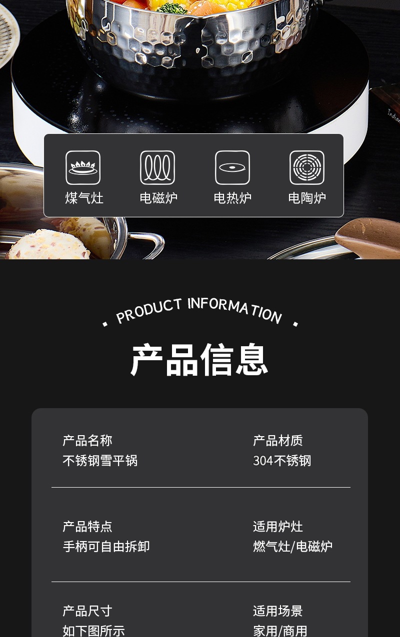 新款多功能复古手柄·304钢雪平锅日式奶锅婴儿家用辅食锅锤纹奶