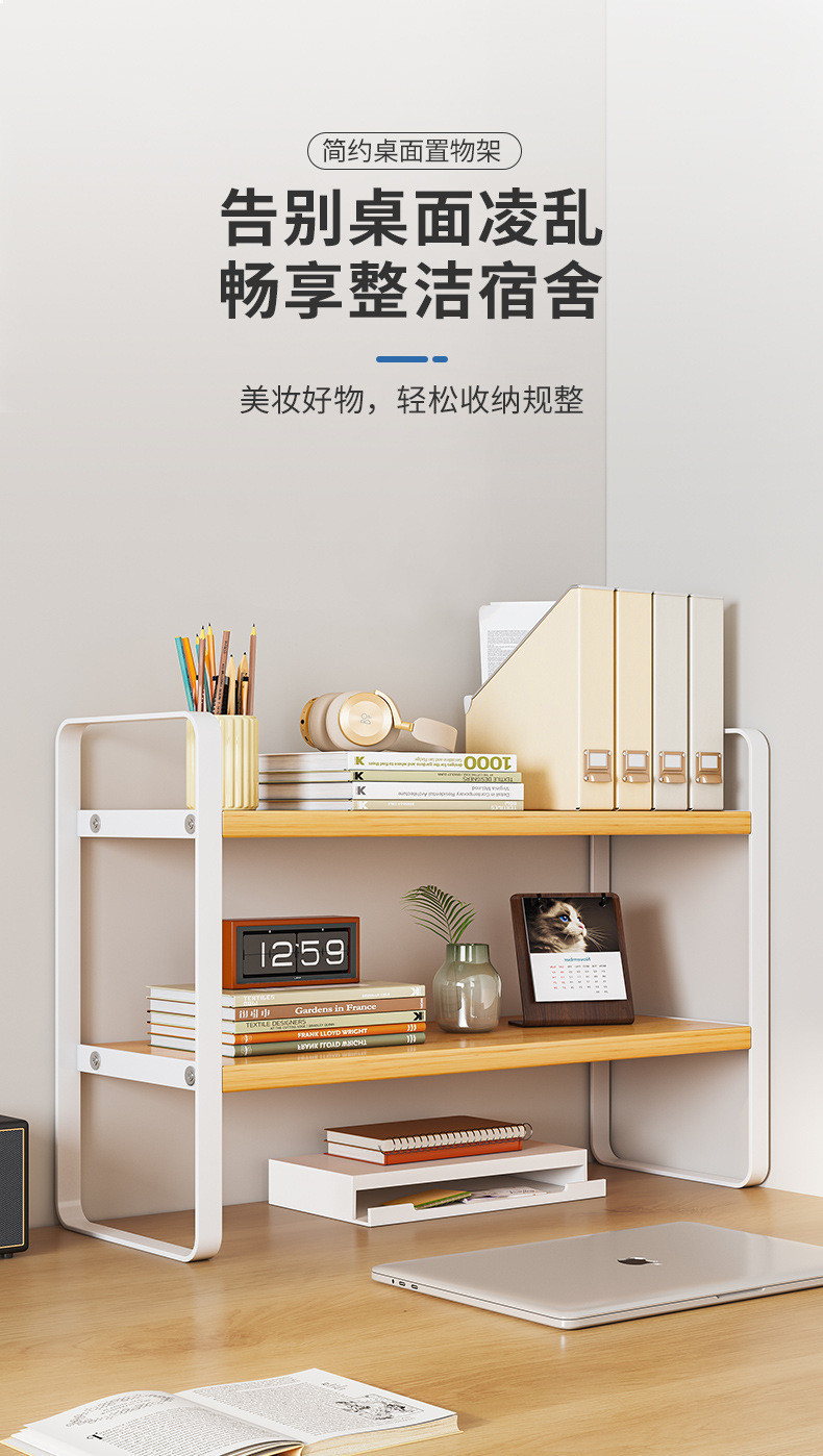 学生宿舍桌面置物架多层免打孔收纳架化妆品架子书架桌上收纳架