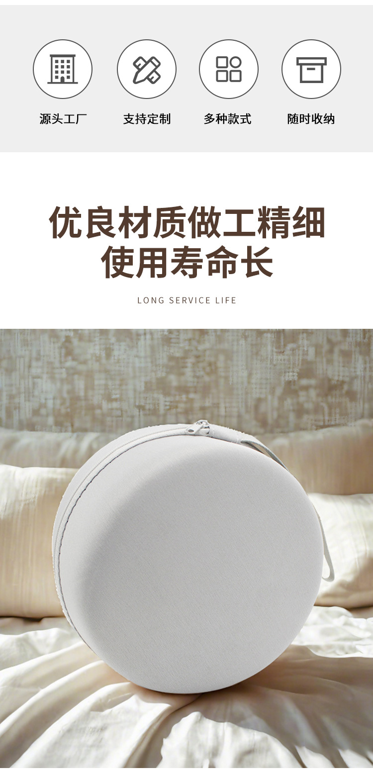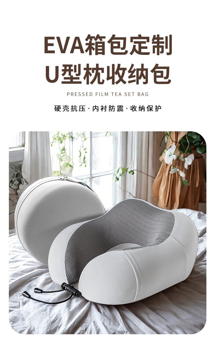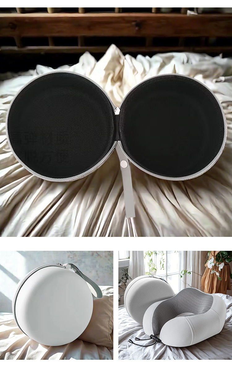厂家直销U型枕圆形收纳包简约颈枕拉链包eva硬壳记忆棉枕包装盒