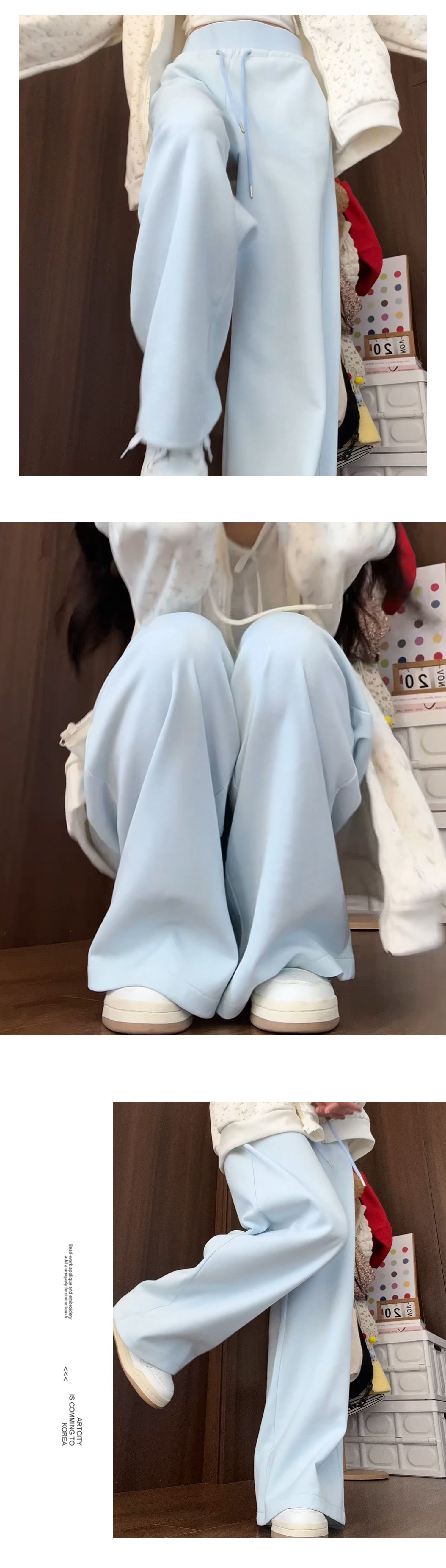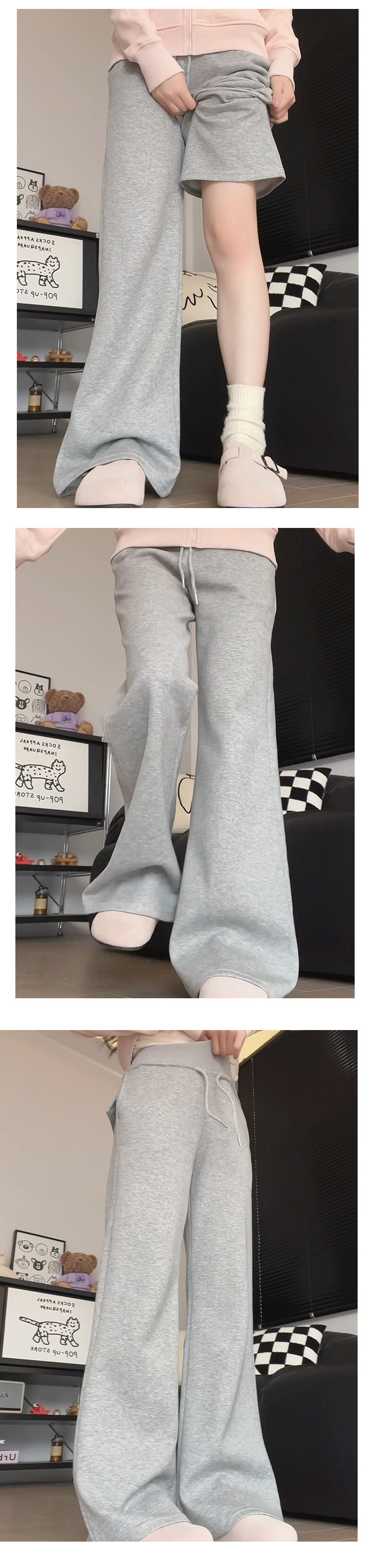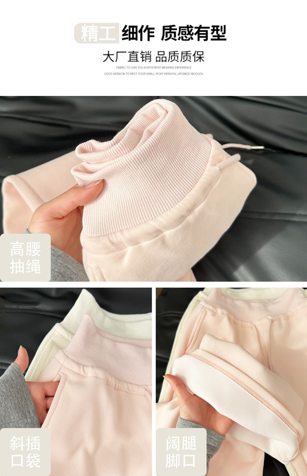 奥德彪粉色微喇叭裤女运动裤新款春秋高腰显瘦阔腿休闲马蹄裤