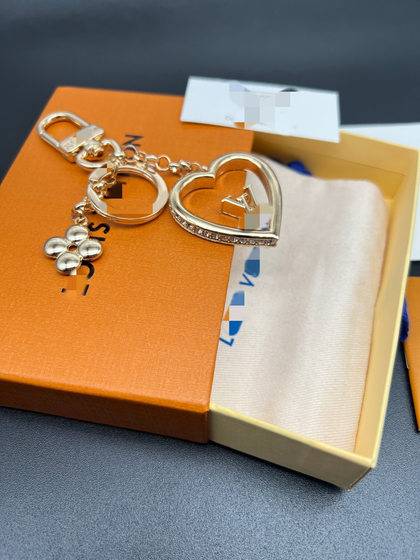 驴牌女包包挂件饰品新款跨境镶钻爱心钥匙链扣V字母创意箱包配饰
