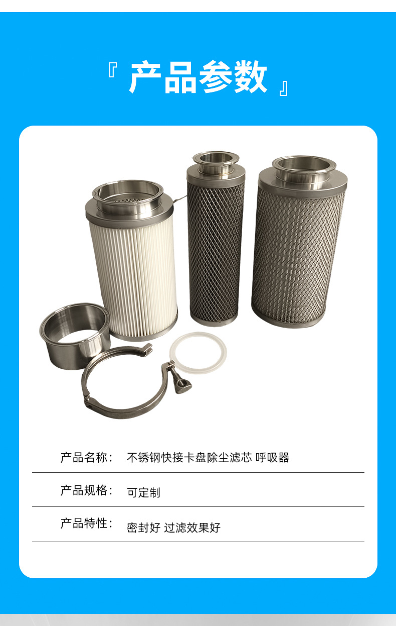 工业除尘用的可拆洗式滤芯呼吸器304材质不锈钢快接卡盘除尘滤芯