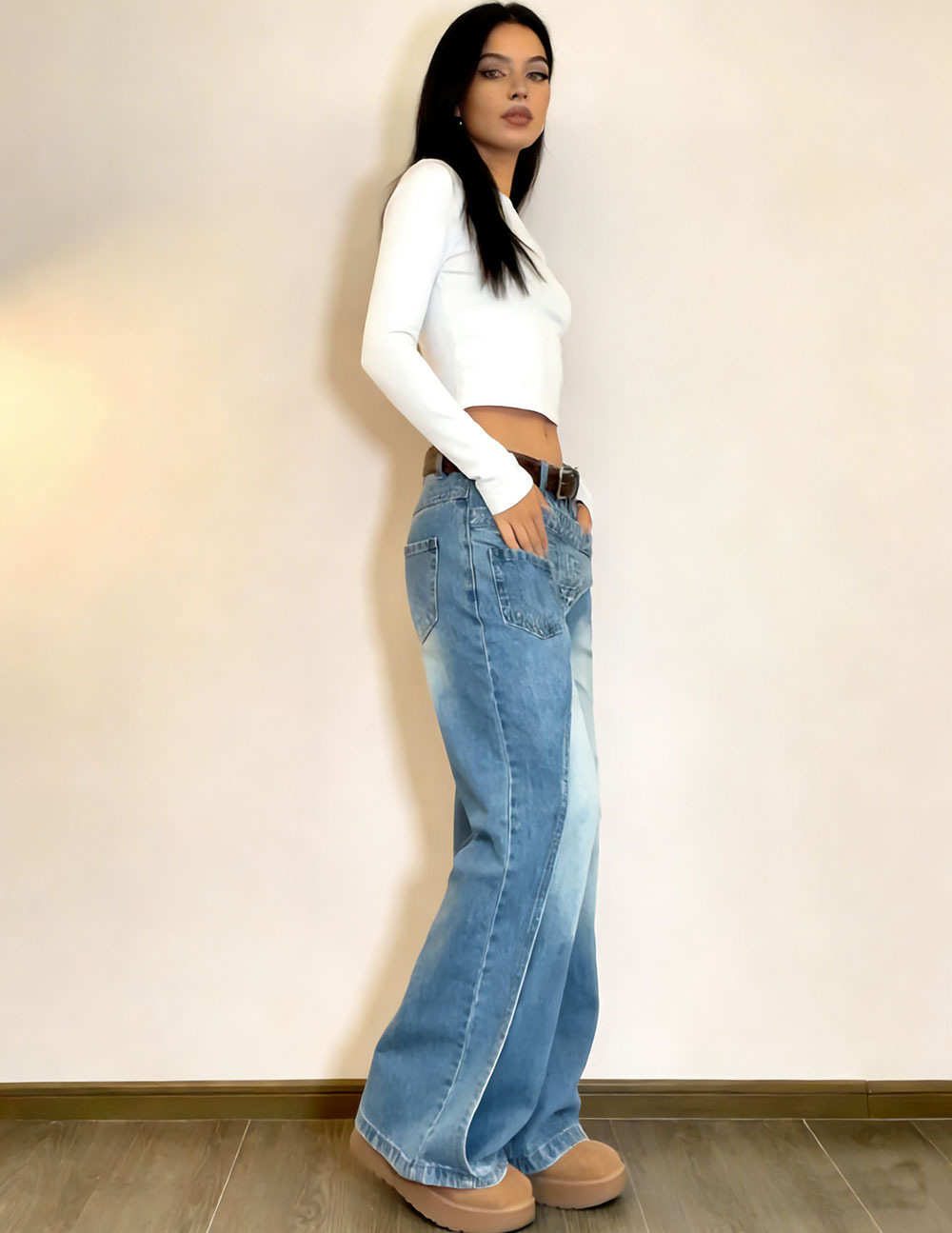 欧美女式休牛仔裤 2026新款女装 亚马逊跨境货源 错位贴片