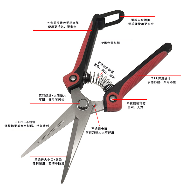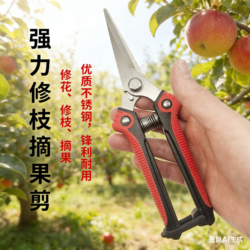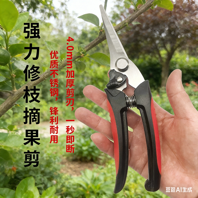 不锈钢修枝剪果园摘果剪果树花园盆栽剪花剪子加厚强力枝条剪