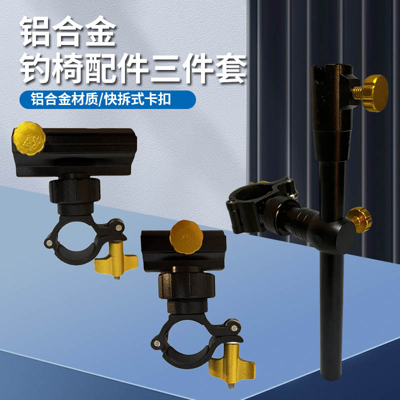 360°黑金铝合金钓椅三件套防丢螺丝设计通用配件拐角钓椅套装
