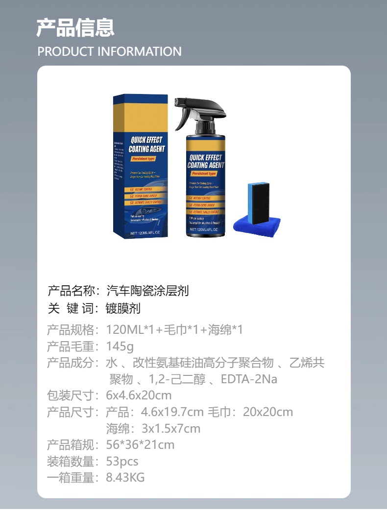 汽车陶瓷涂层剂 汽车漆面保持光泽保养养护洁净防尘纳米镀膜剂