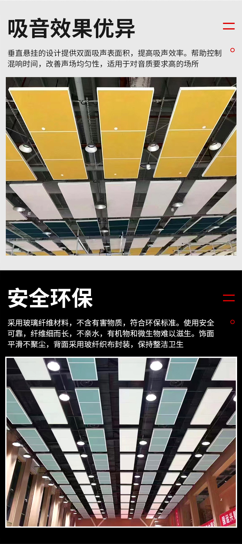 悬挂吸音体录音棚酒店垂直悬挂双面吸声吸音隔音板铝框悬挂吸音板