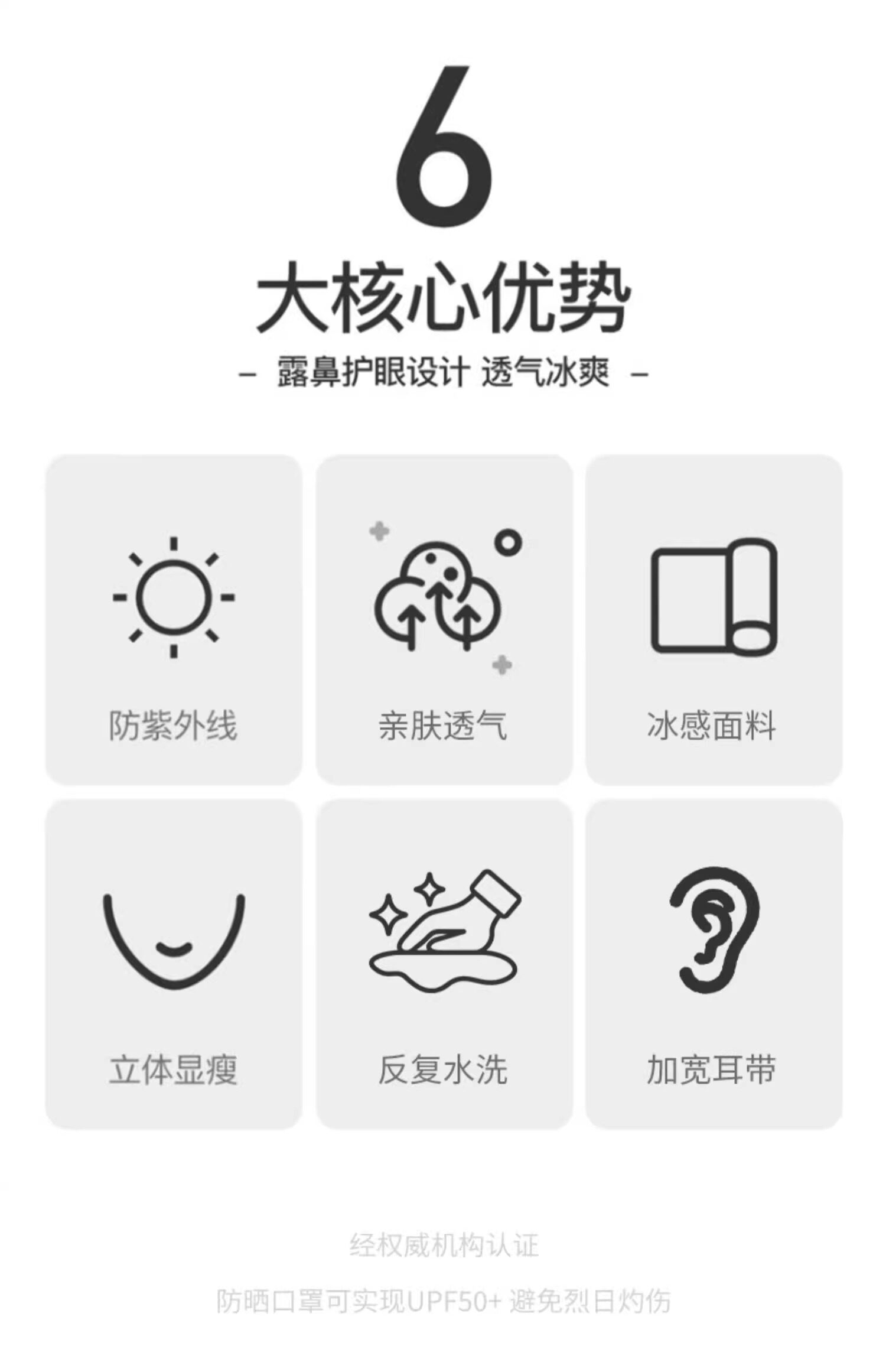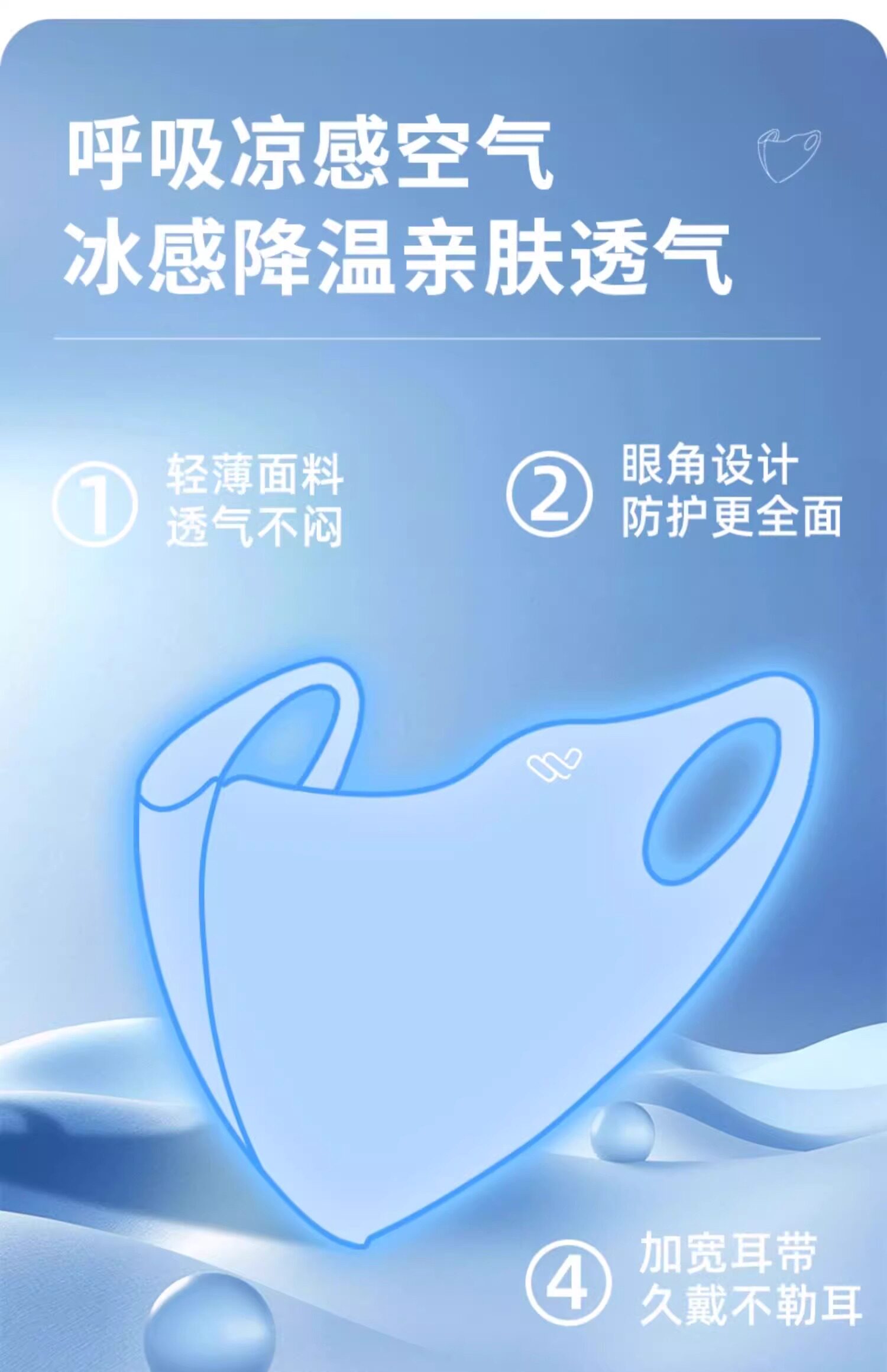 冰丝防晒口罩男女夏季防紫外线UPF50+立体护眼角轻薄透气可水洗