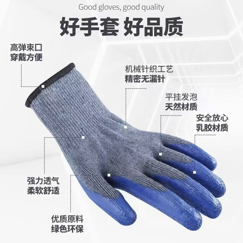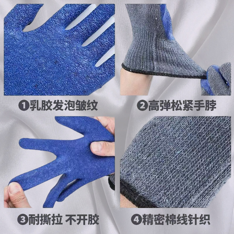 乳胶浸胶皱纹劳保手套 防滑透气耐磨加厚 机械维修等作业厂家批发