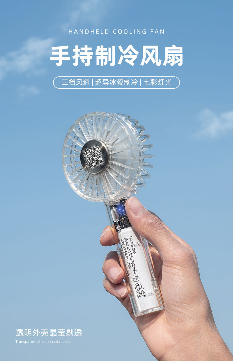 新款usb充电户外便携100档大风涡轮风扇透明高速制冷冰敷手持风扇