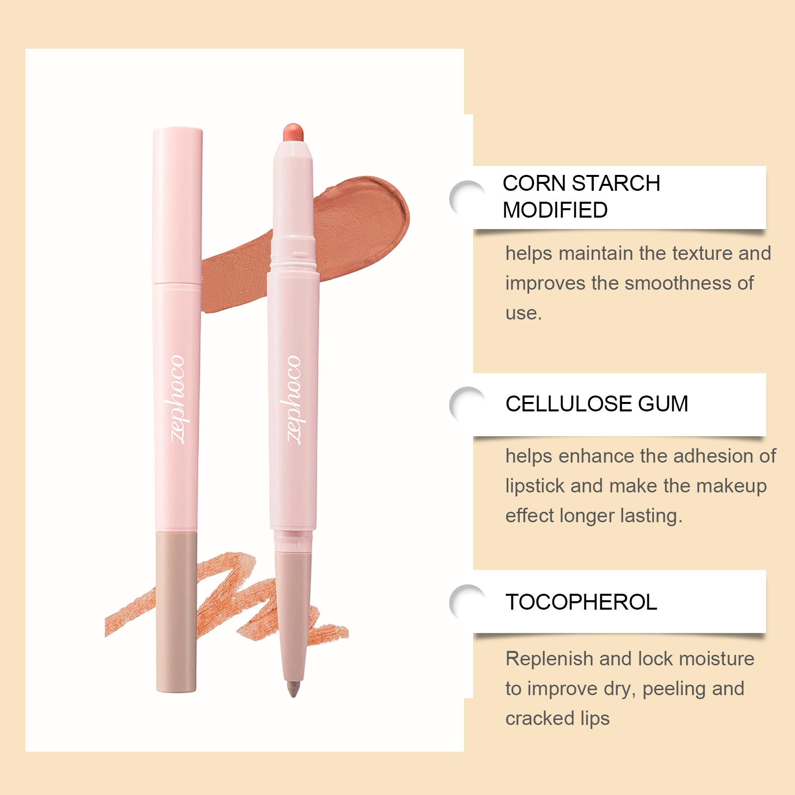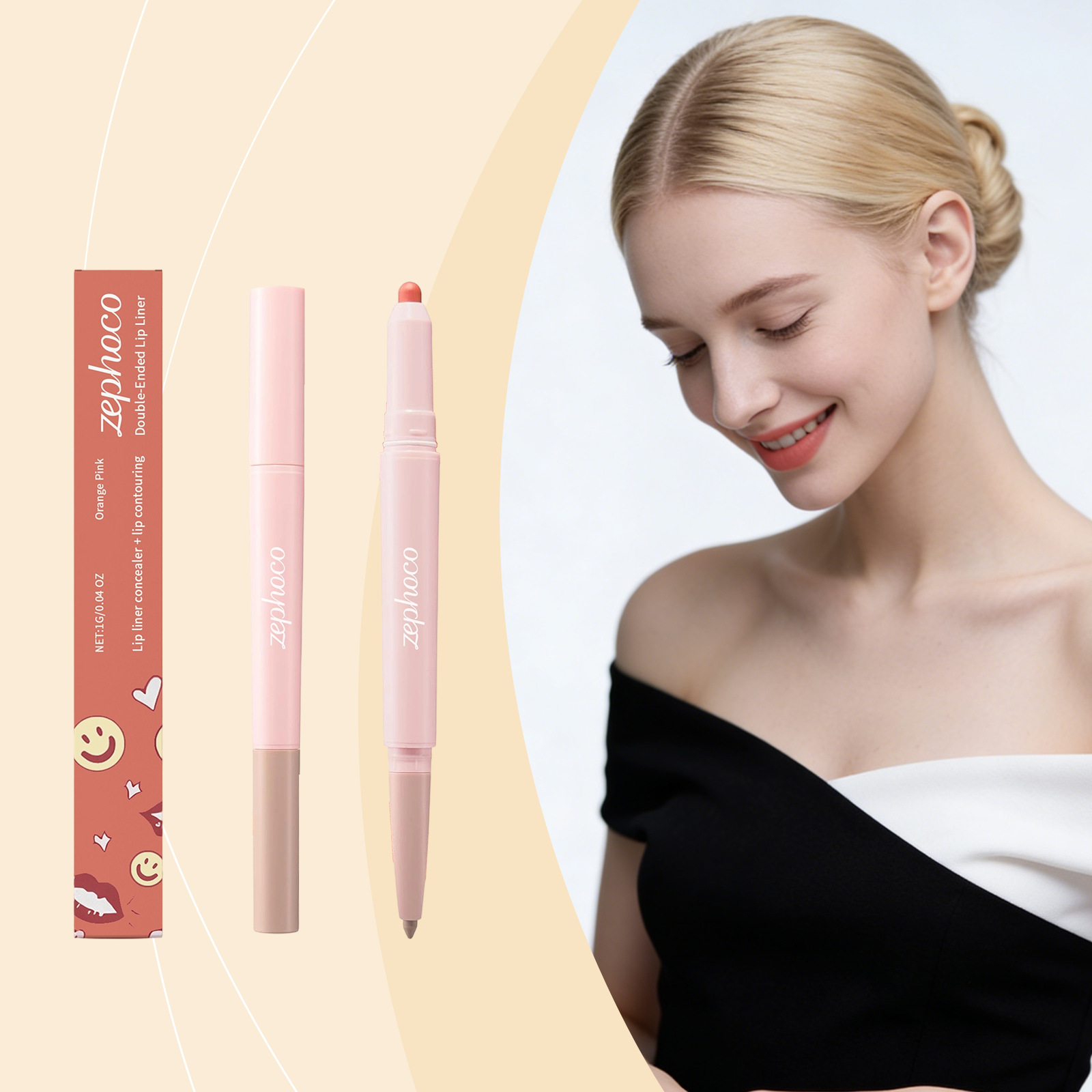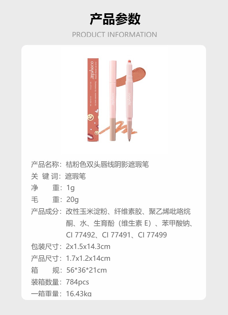 zephoco 桔粉色双头唇线阴影遮瑕笔 日常自然显色妆感服帖遮瑕笔