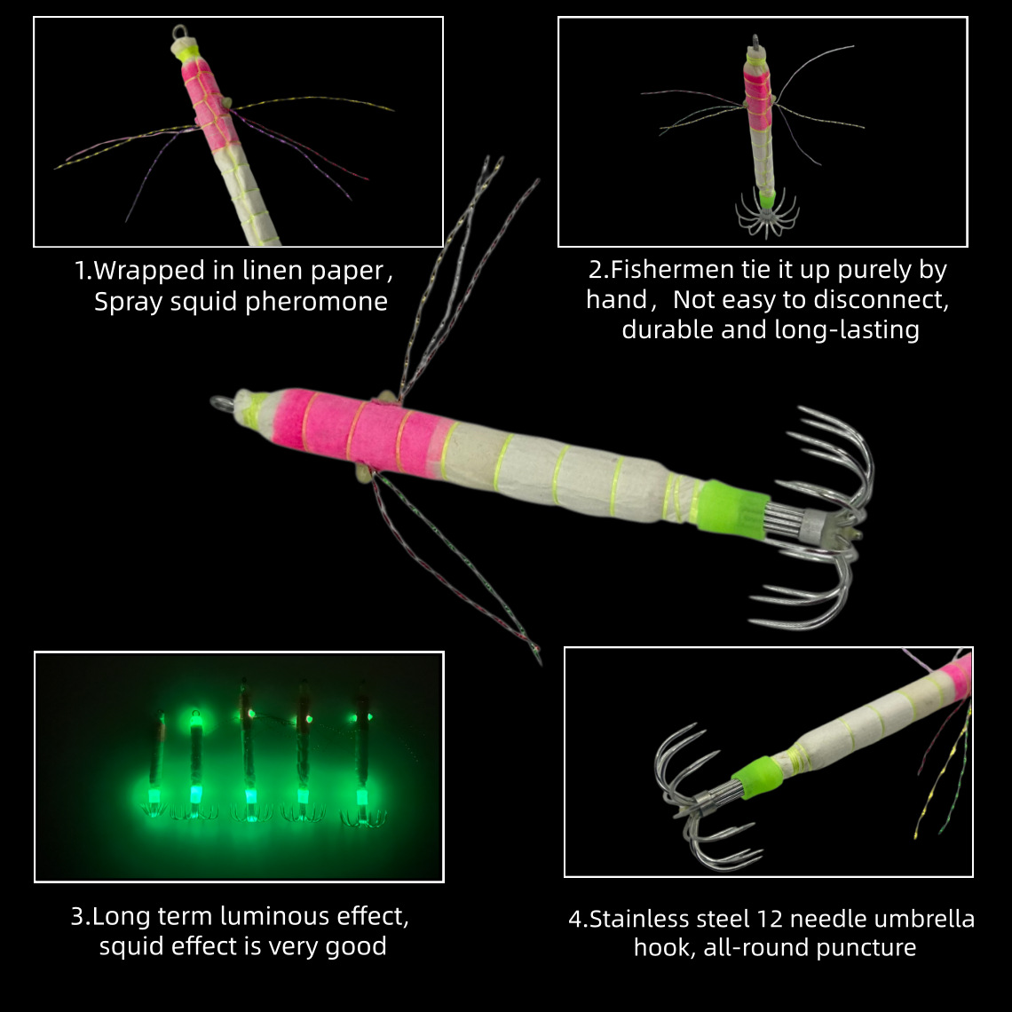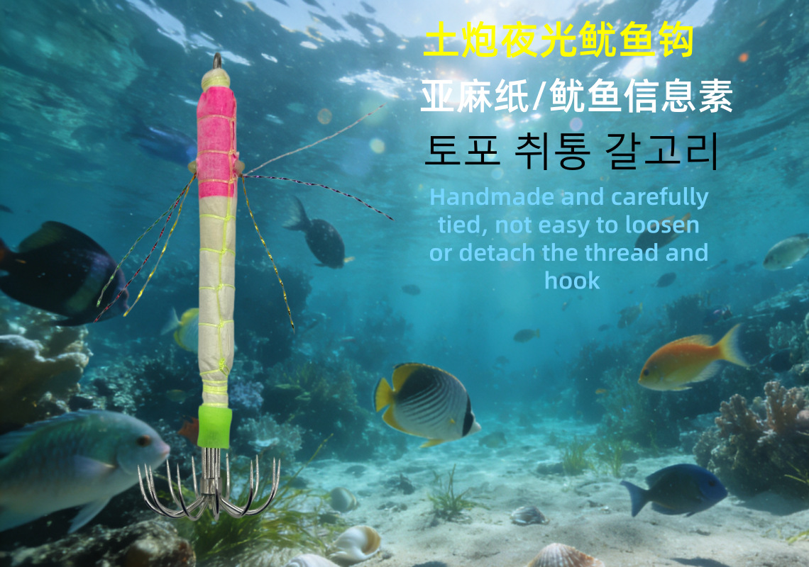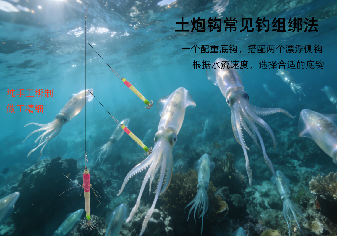 四代土炮钩夜光八爪钩吹筒鱿鱼钩红头鱿鱼钩软布卷墨鱼吹筒鈎鱼钩