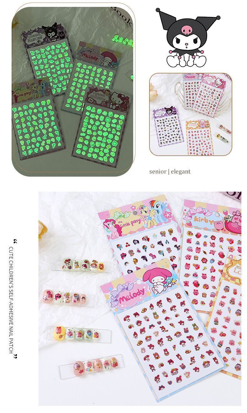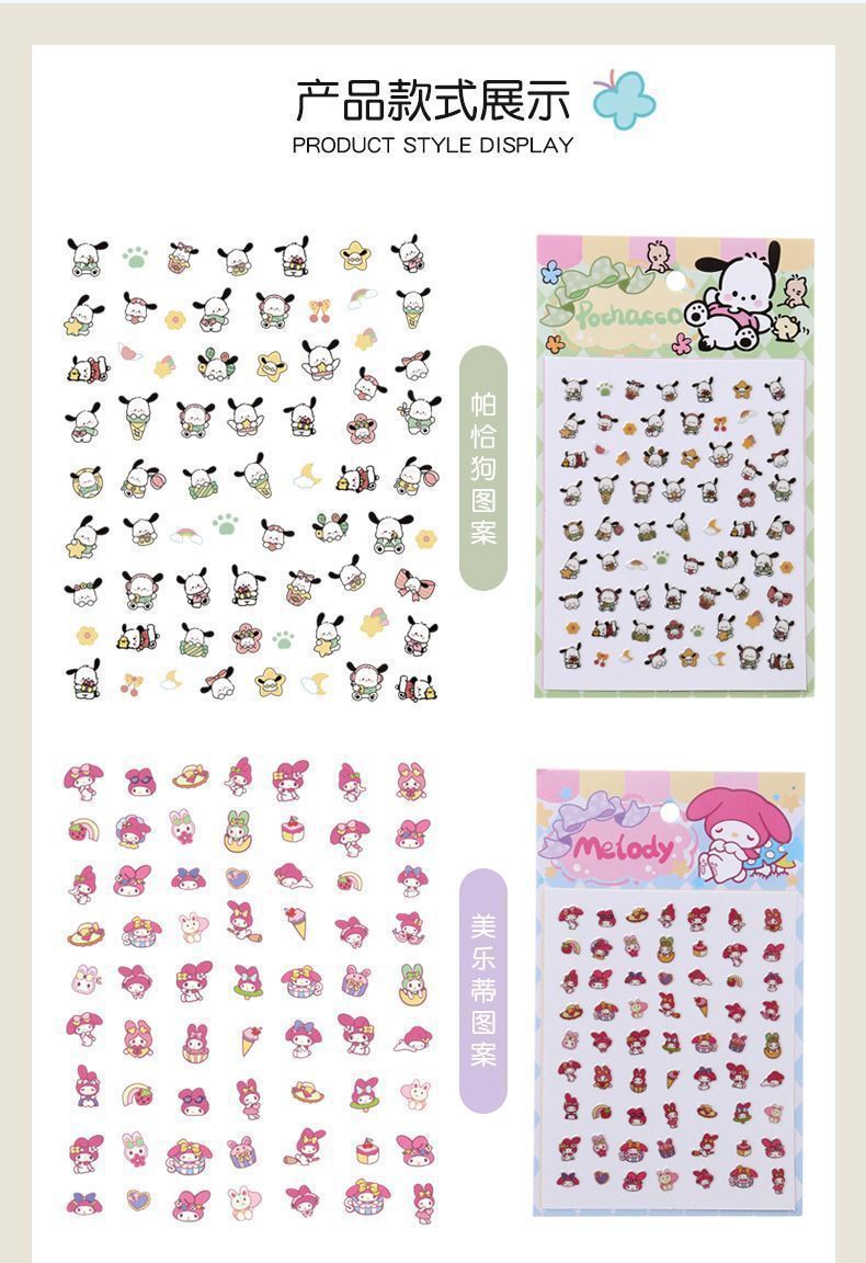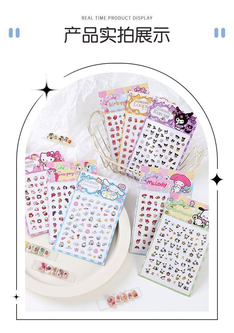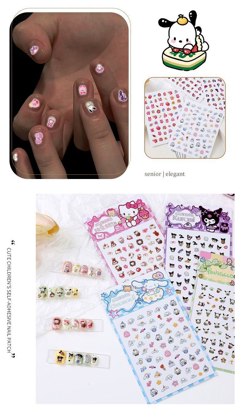女宝宝卡通指甲贴三丽鸥美乐蒂库洛米玉桂狗自粘美甲贴片小女孩公
