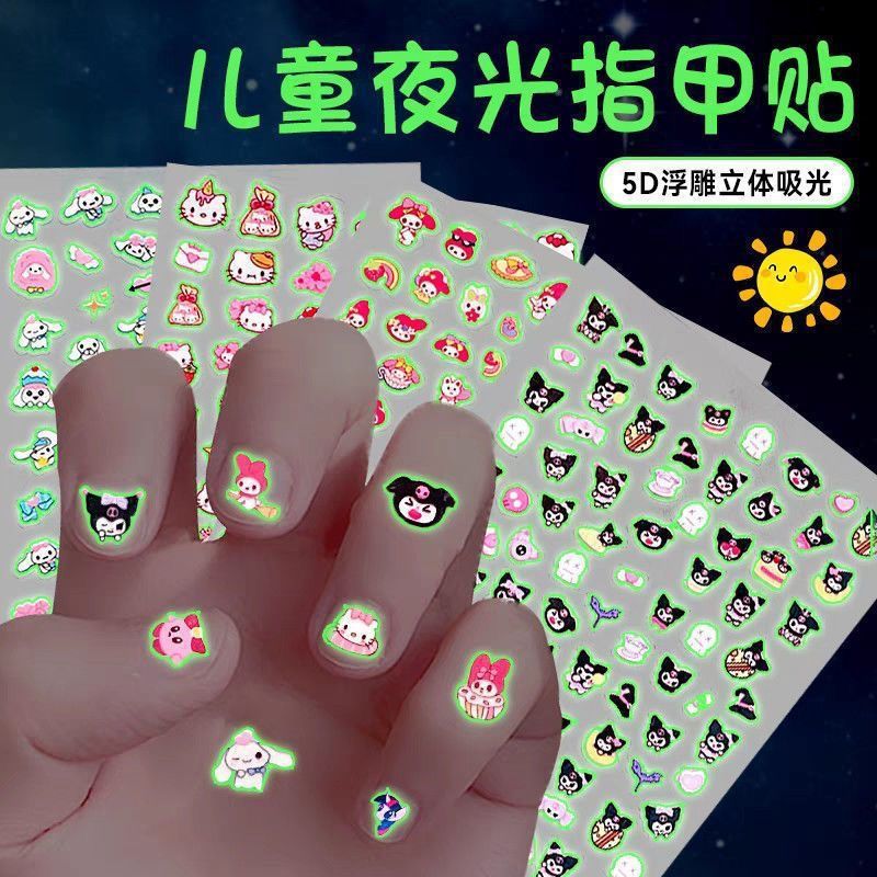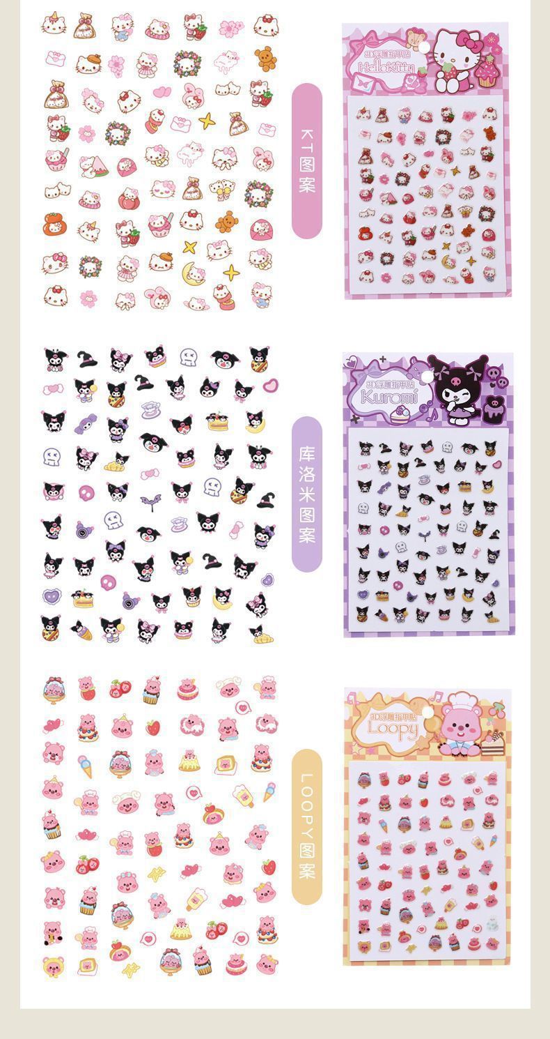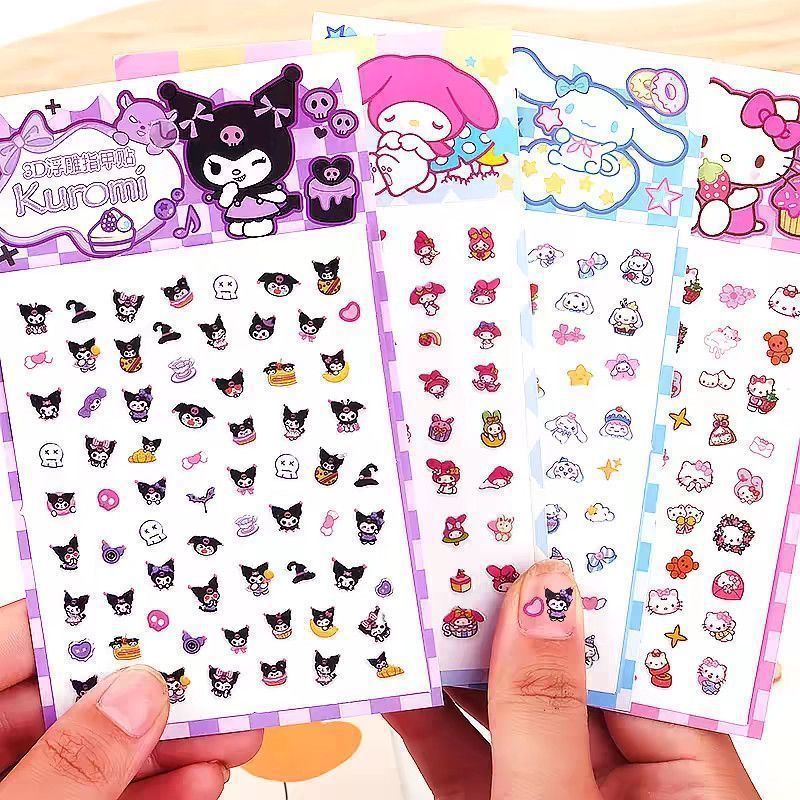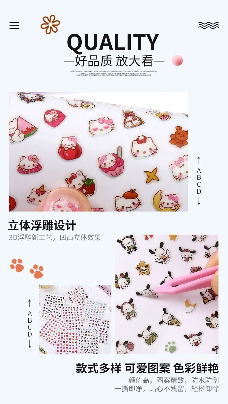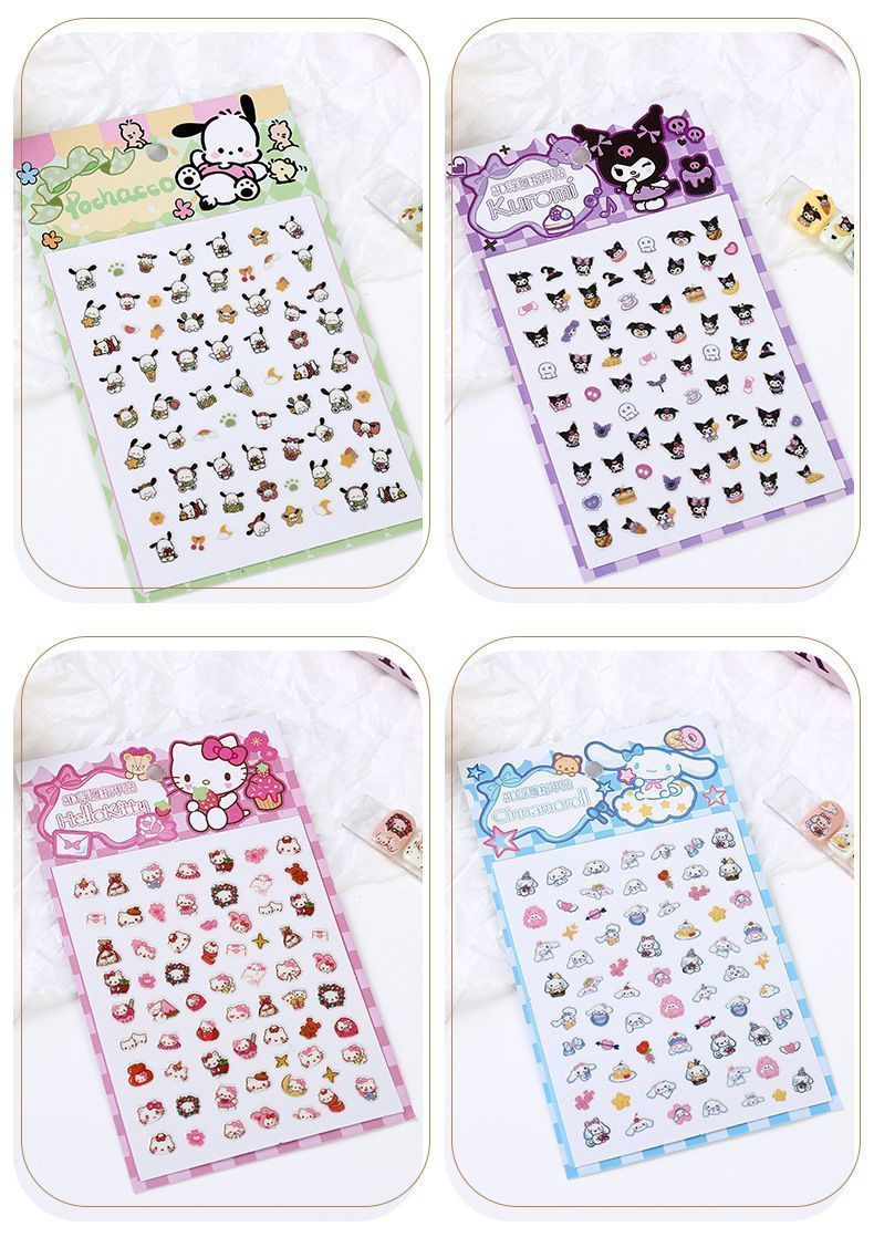 女宝宝卡通指甲贴三丽鸥美乐蒂库洛米玉桂狗自粘美甲贴片小女孩公