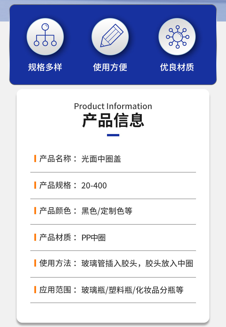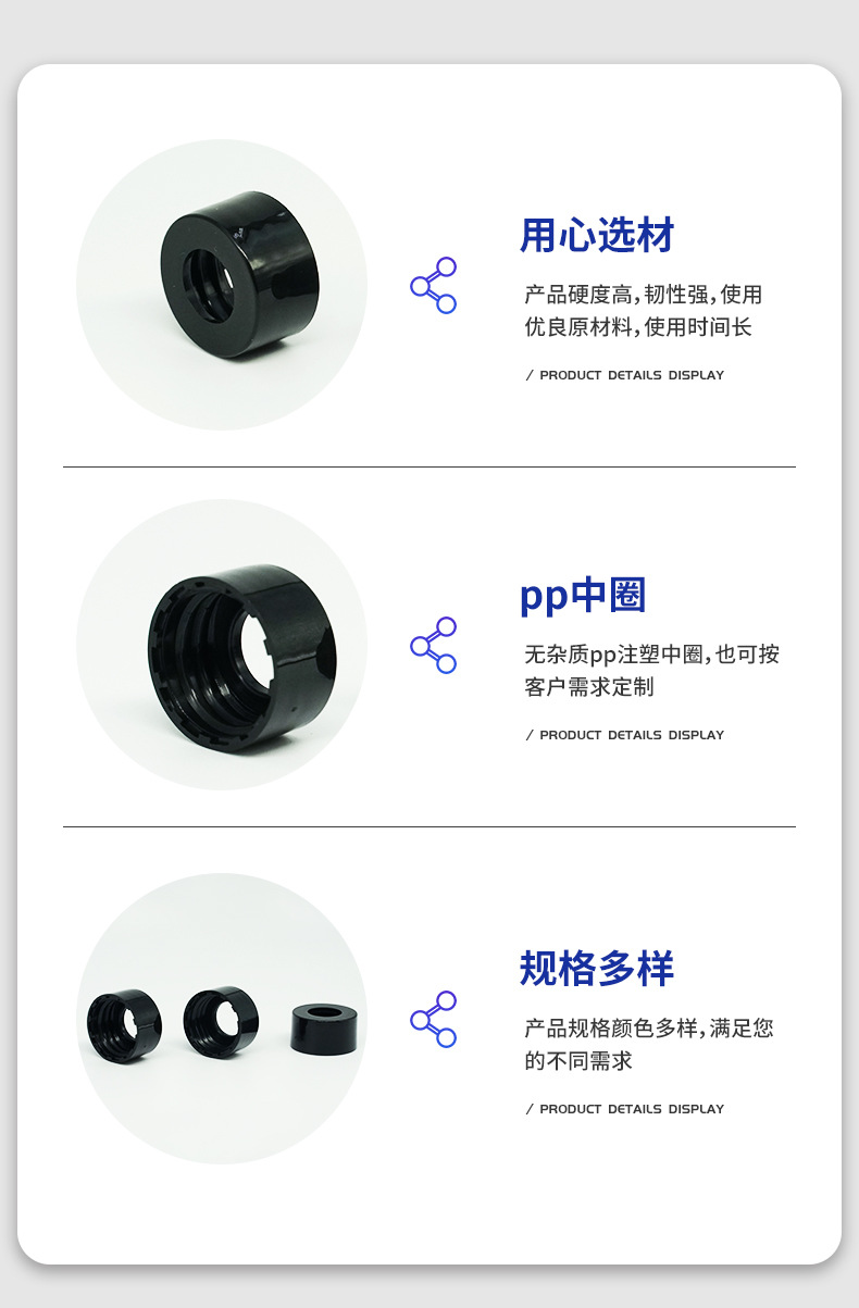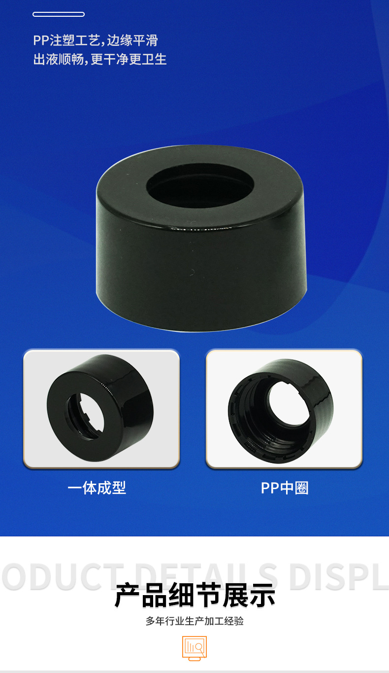 厂家供应13牙 20-400PP塑料光面中圈盖小样瓶塑料瓶盖胶头滴管圈