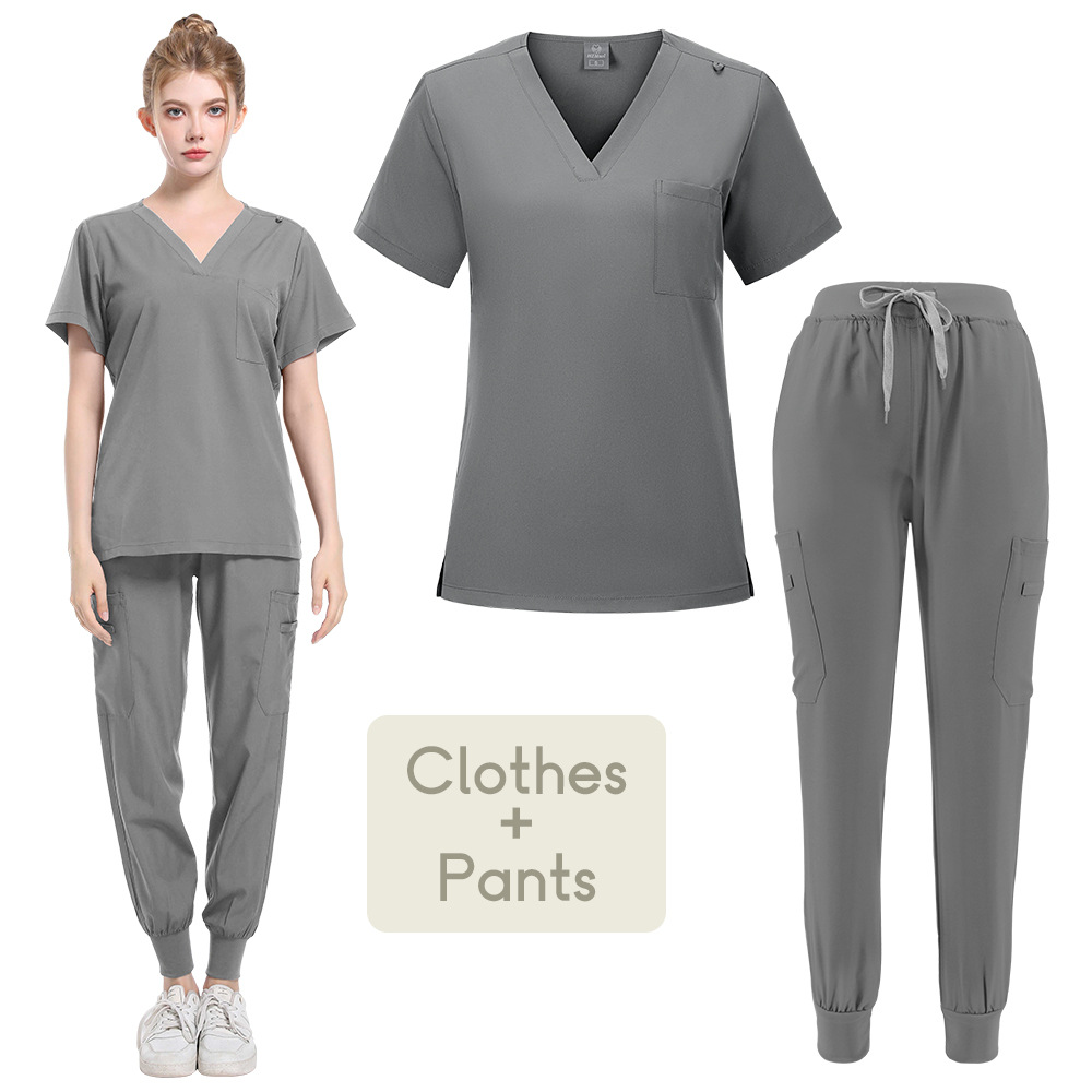 医院手术服批发V领弹力刷手服短袖洗手衣套装女宠物美容院护士服
