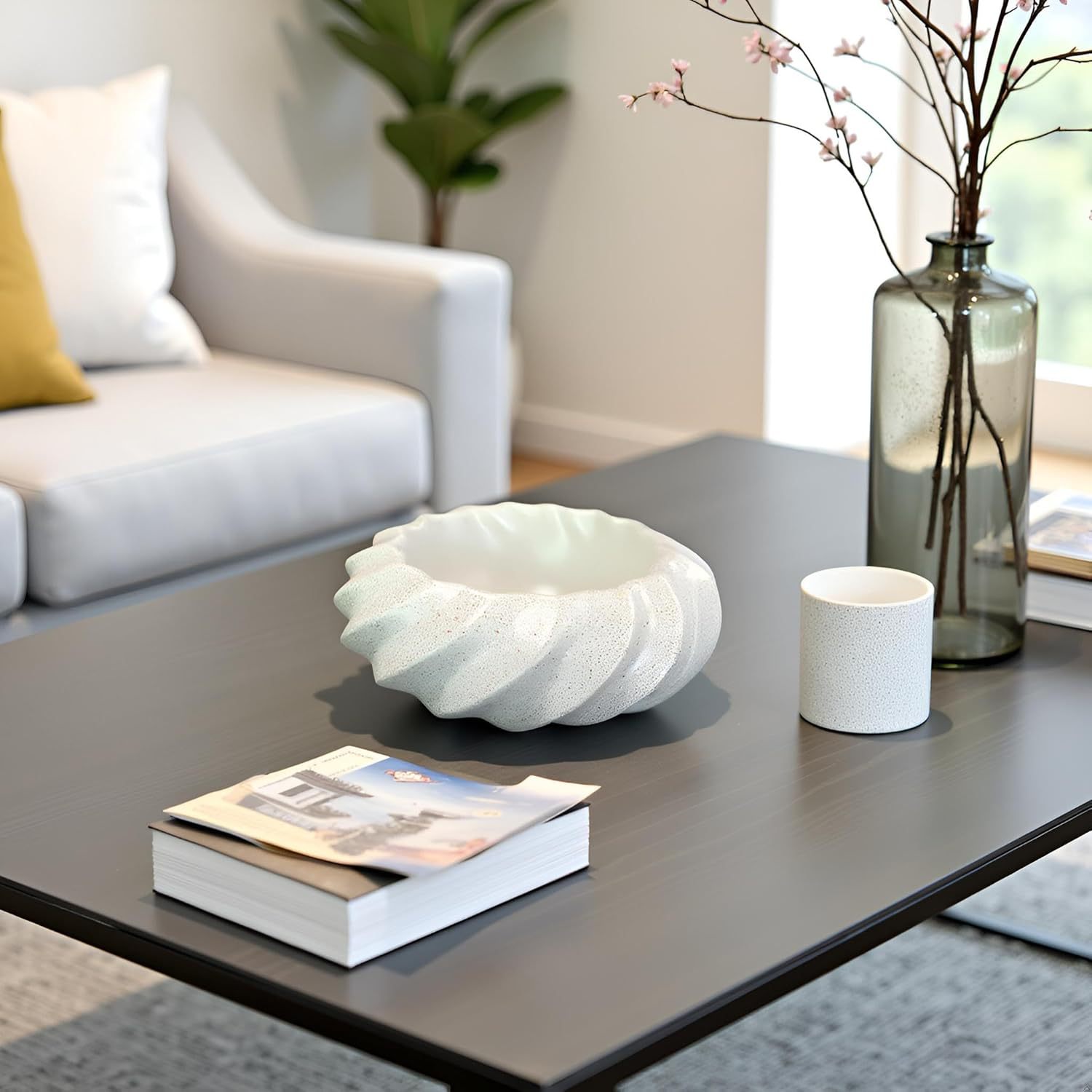 侘寂风螺旋纹水泥收纳碗 玄关钥匙首饰收纳盘 桌面装饰摆件