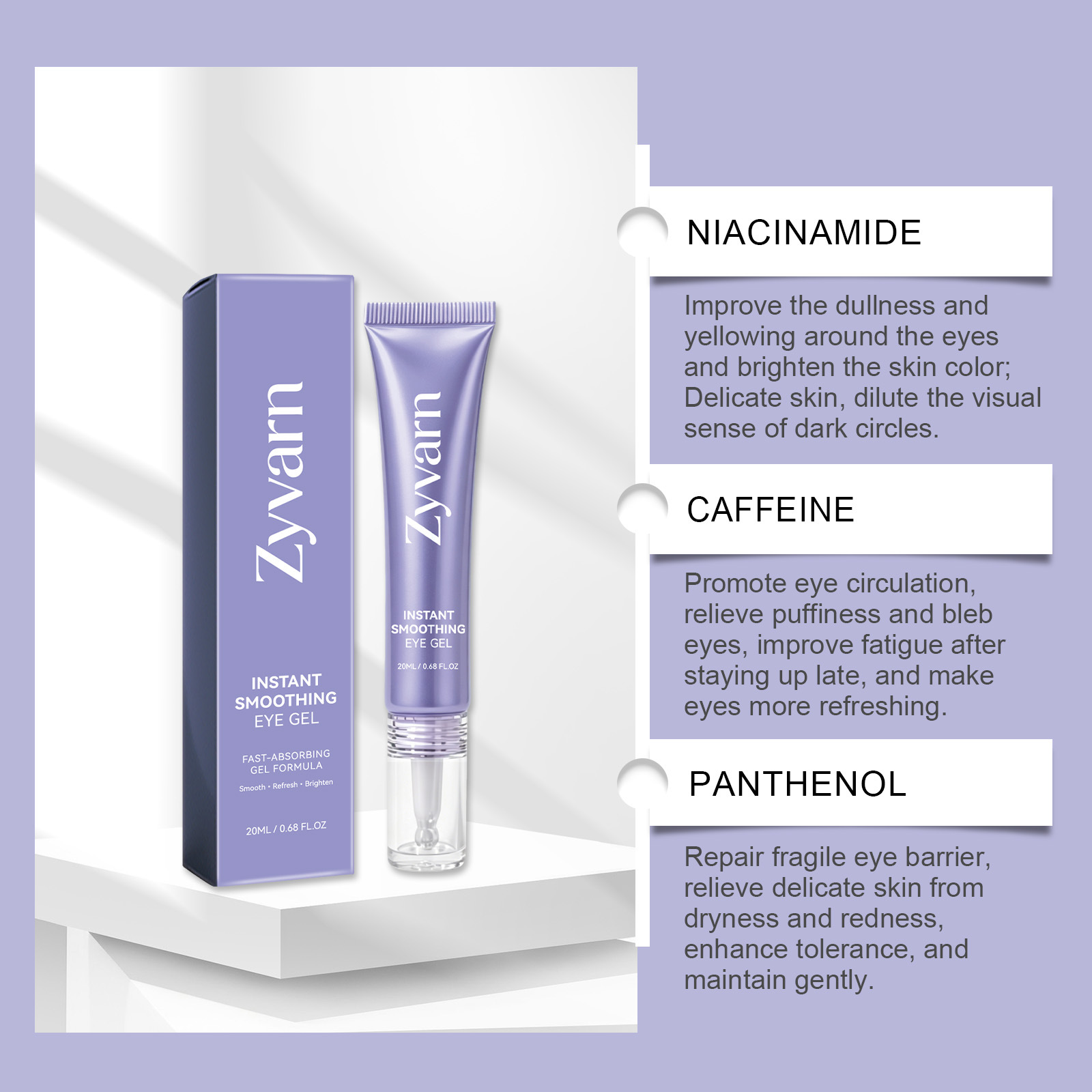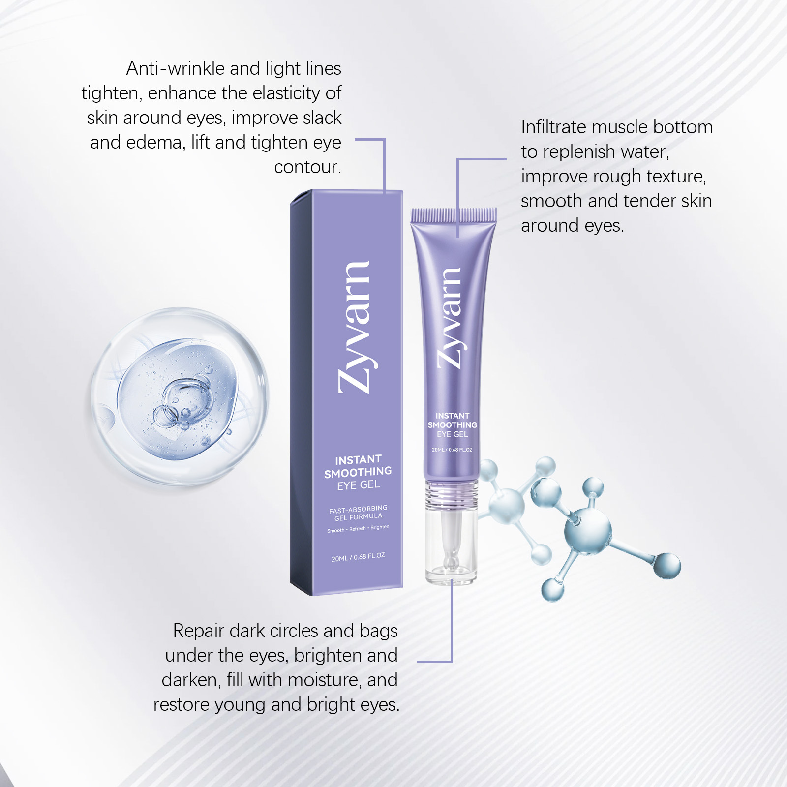 Zyvarn眼部凝胶 温和呵护眼部肌肤舒润柔滑细腻清爽保湿护理凝胶