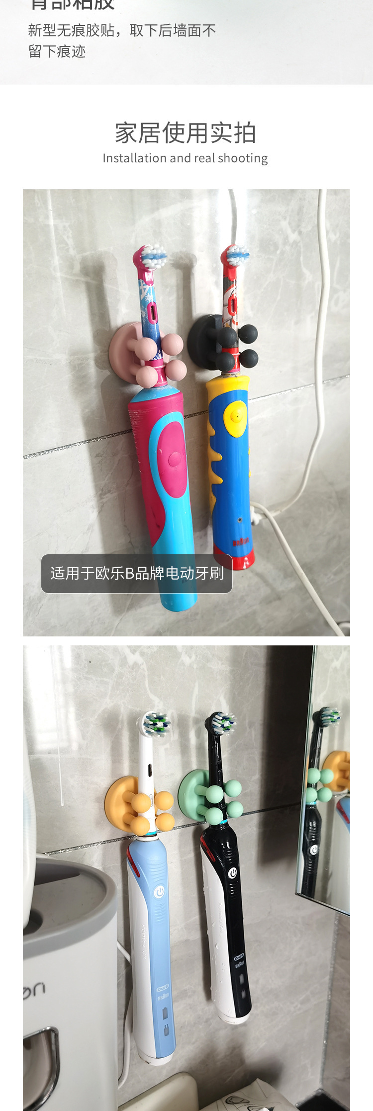 跨境 免钉硅胶无痕四叉钩子墙壁粘贴挂钩浴室牙刷牙膏剃须刀粘钩