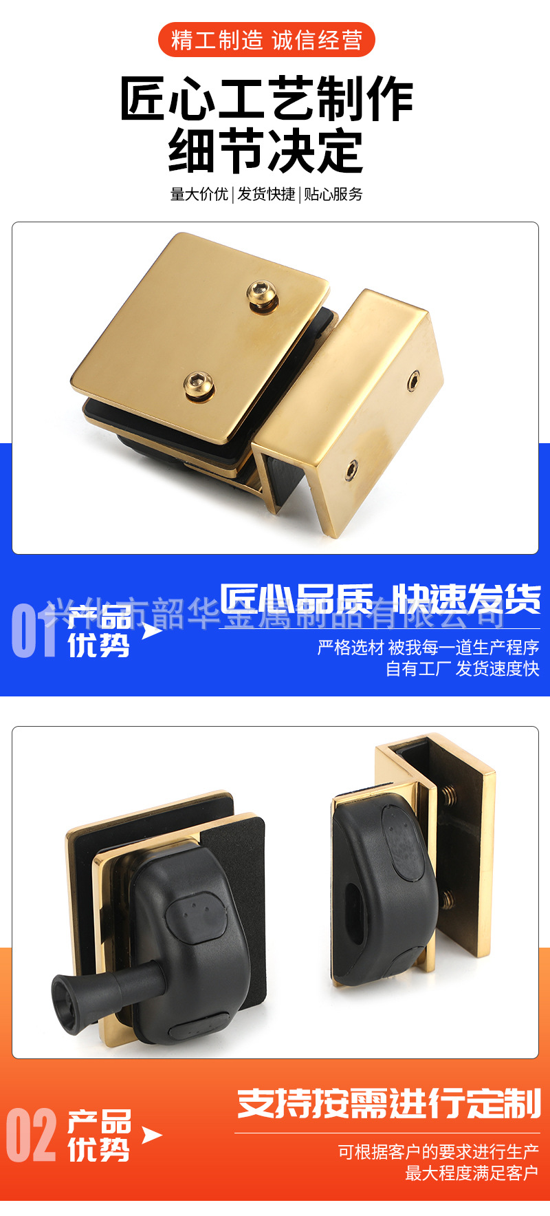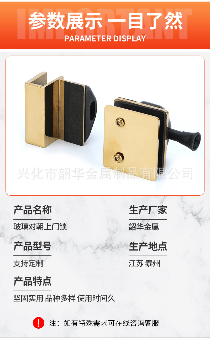 玻璃对朝上门锁磁力锁90度玻璃对玻璃免开孔门锁批发