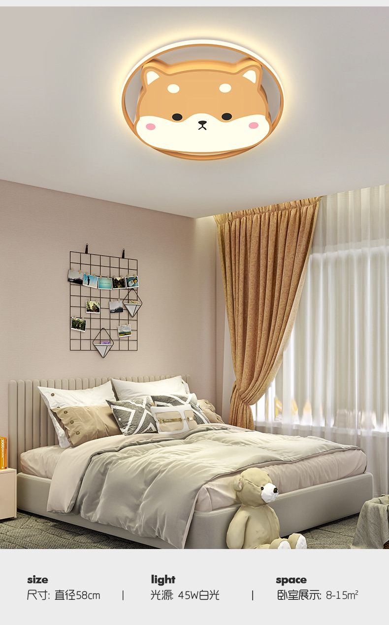 儿童房间灯男孩女孩卡通可爱创意温馨柴犬卧室灯led护眼吸顶灯具
