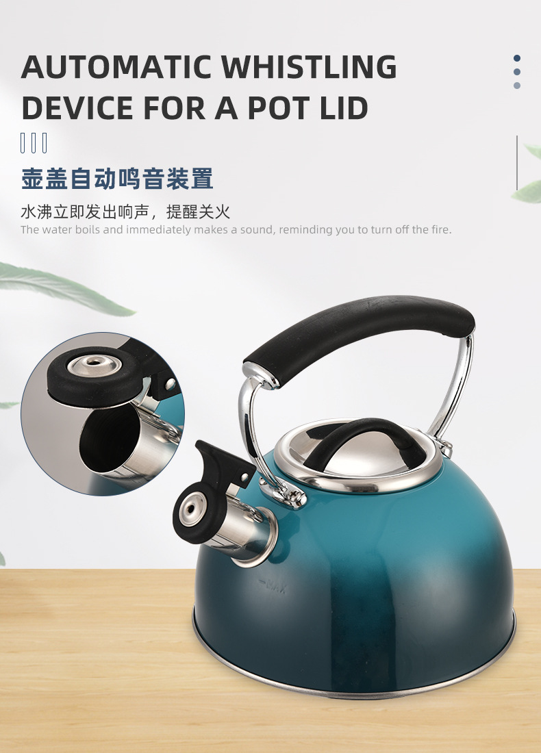 跨境不锈钢烧水壶酒店鸣音平底壶家用半球形煤气电磁炉开水壶批发