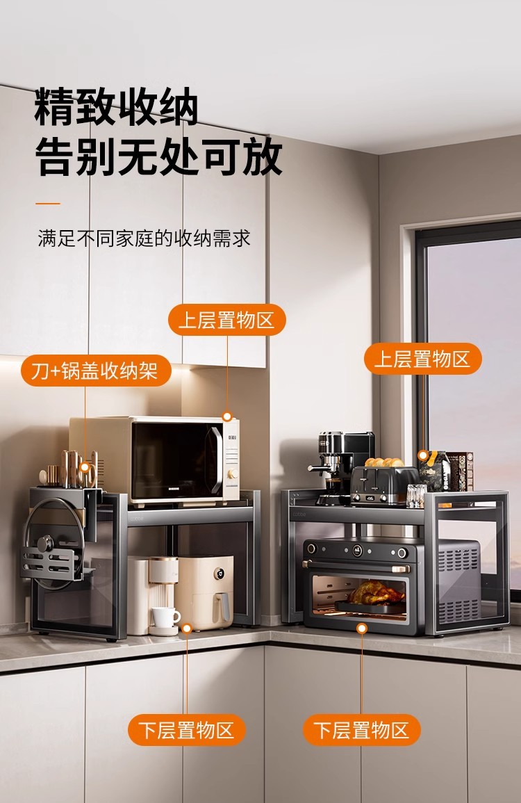简约厨房置物架家用微波炉烤箱收纳架厂家供应厨房台面双层整理架
