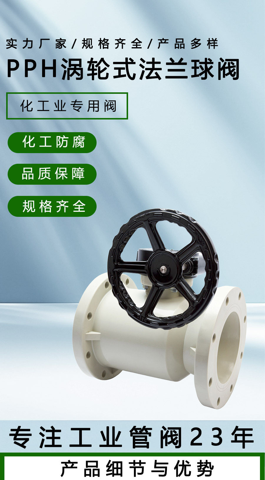 PPH涡轮式法兰球阀化工级一体直通式塑料防腐蚀耐酸碱法兰球阀