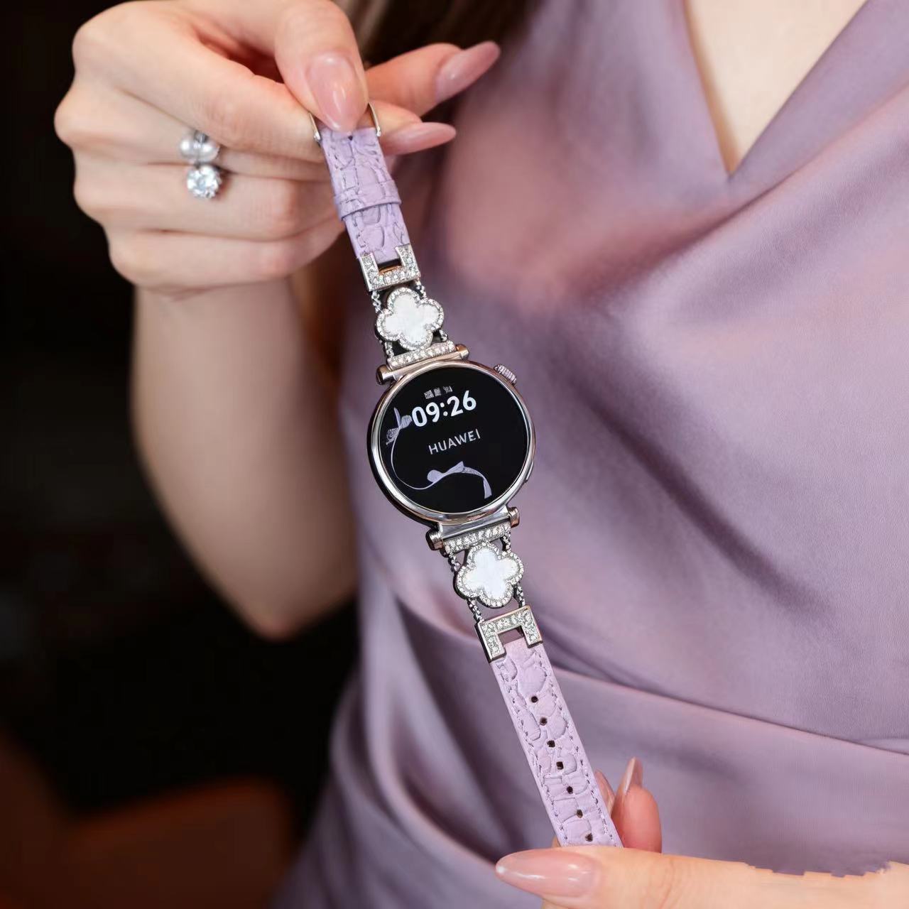 适用华为手表GT4/GT5轻奢四叶草拼鳄鱼皮金属表带watch34时尚女款,批发价,价格:24,厂家直销,适用华为手表GT4/GT5轻奢四叶草拼鳄鱼皮金属表带watch34时尚女款,免费拿样。