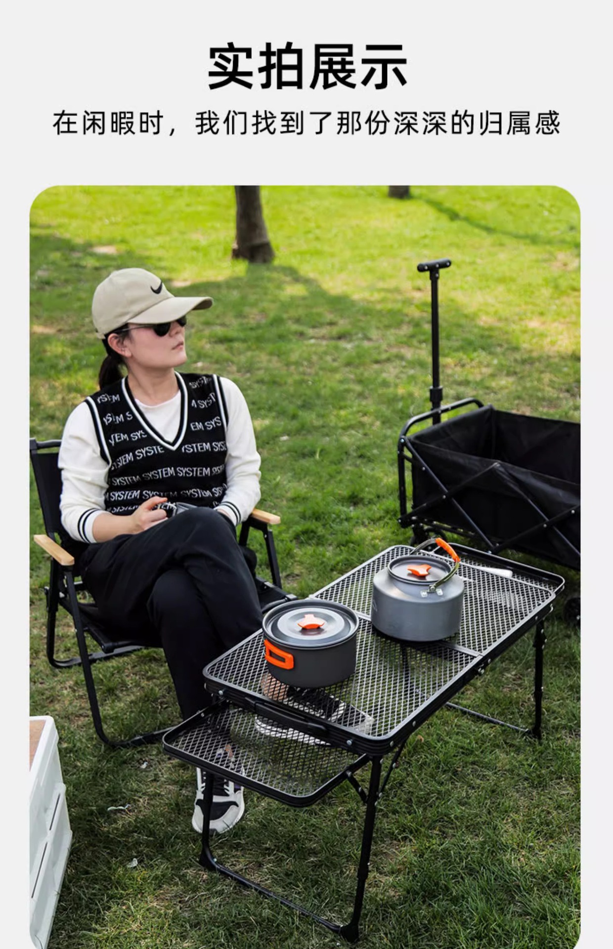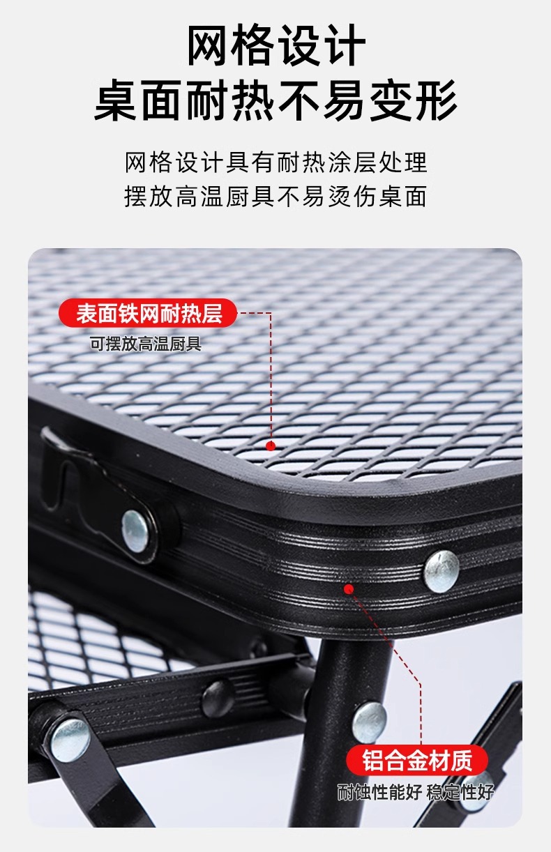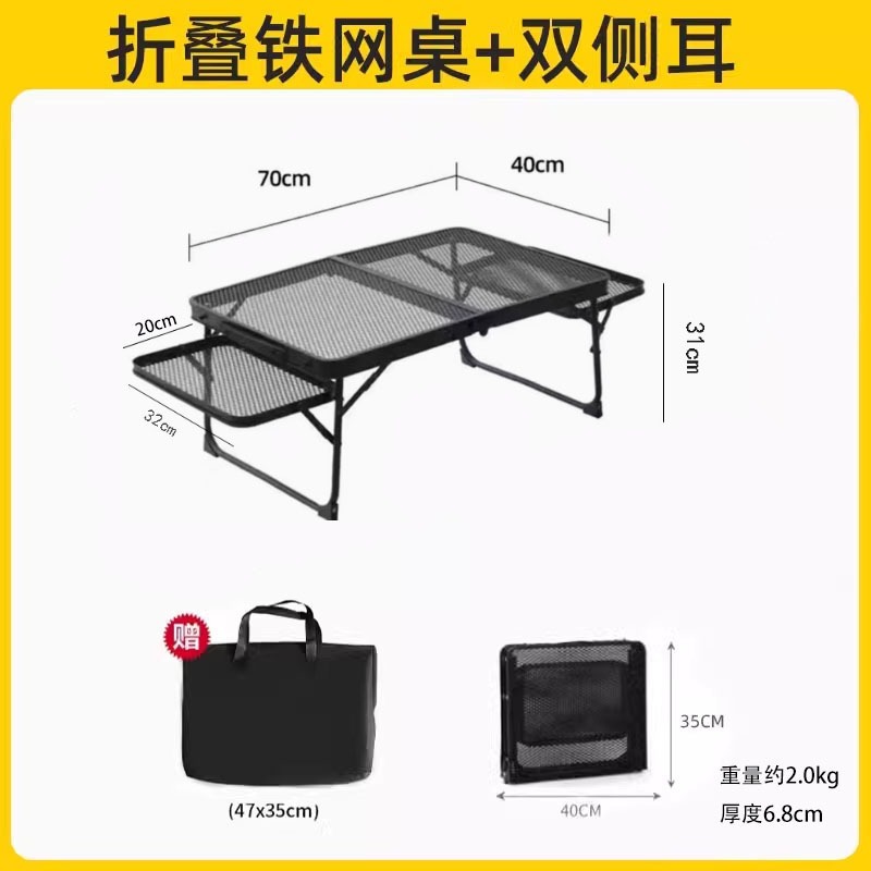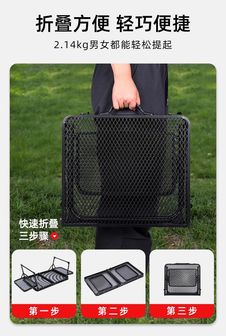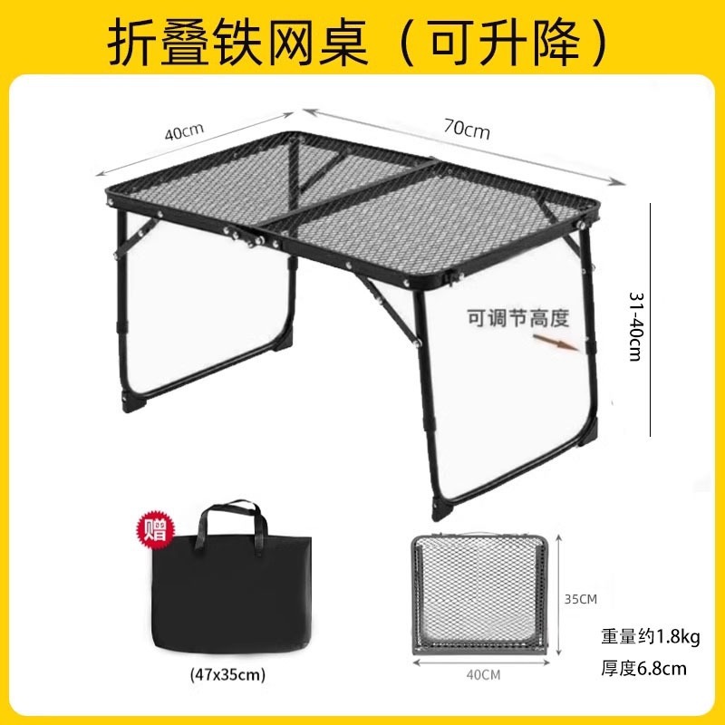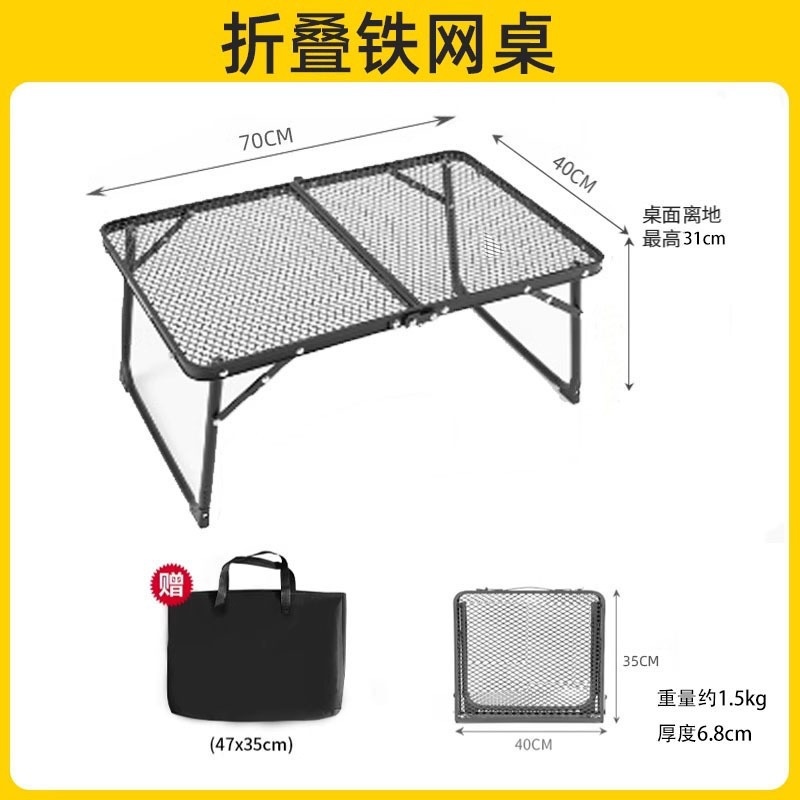 户外折叠网格桌多功能铁网桌便携式野餐露营桌椅装备迷你烧烤桌子