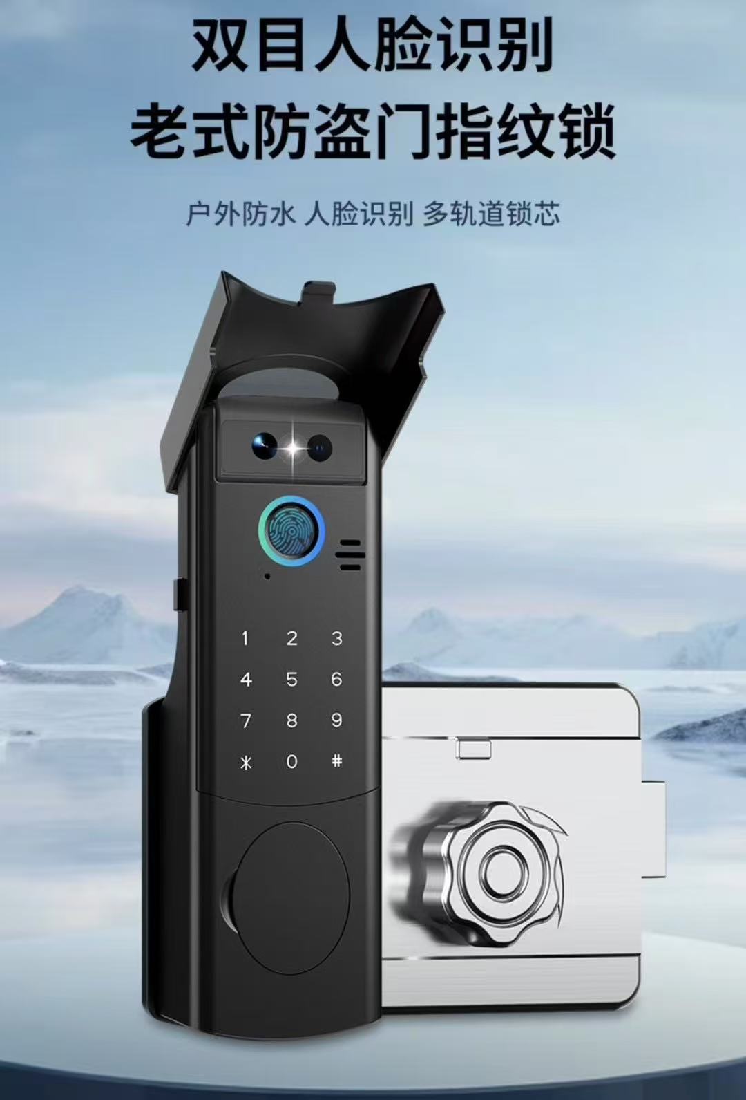 户外防水防晒老式铁门人脸识别指纹密码牛头锁不锈钢庭院门智能锁,批发价,价格:298,厂家直销,户外防水防晒老式铁门人脸识别指纹密码牛头锁不锈钢庭院门智能锁,免费拿样。