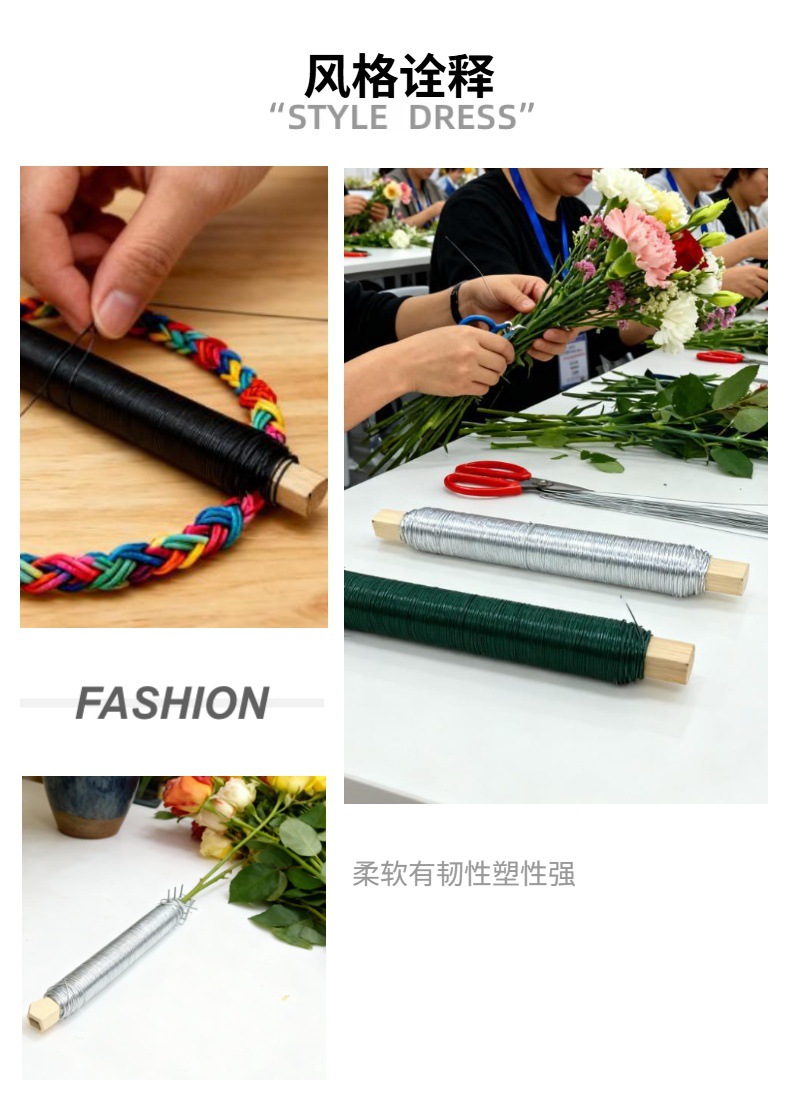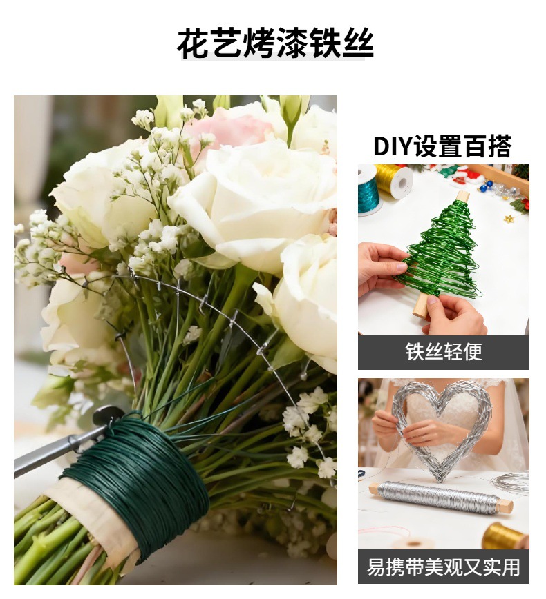 彩色木轴烤漆丝园艺捆扎线厂家批发花艺金属丝插花材料包装饰编织