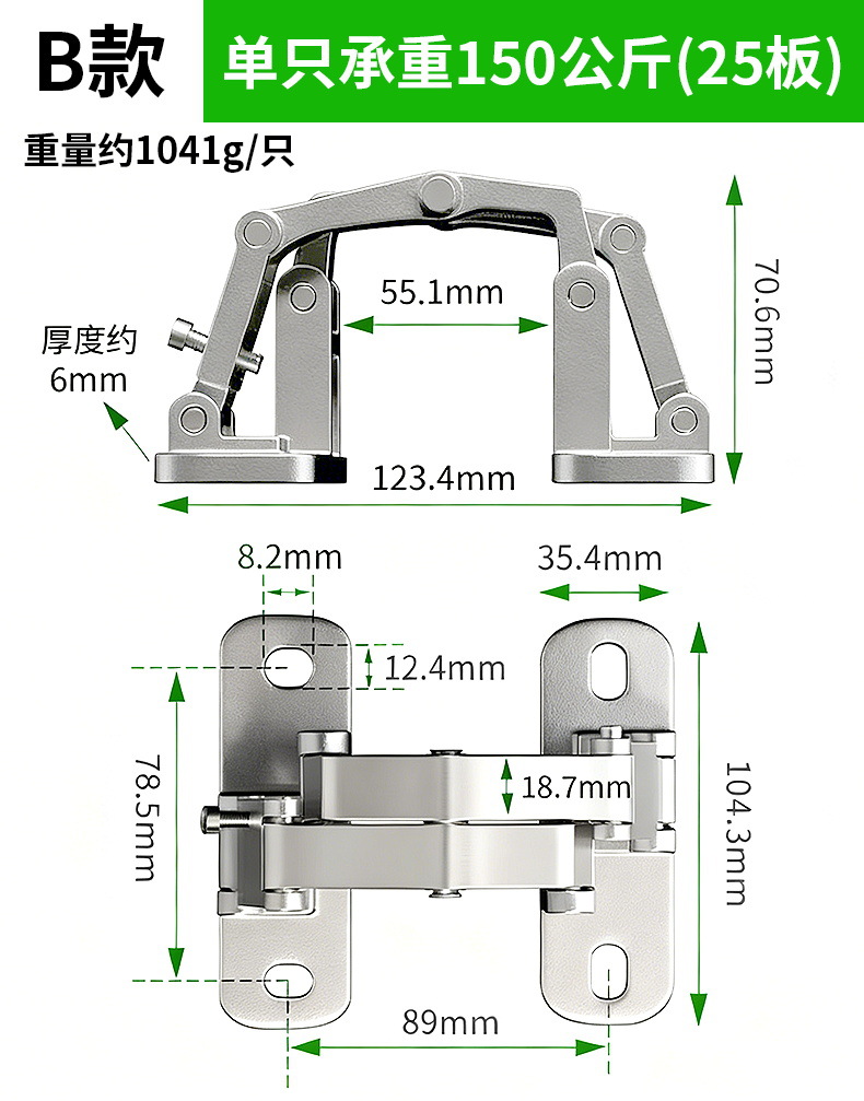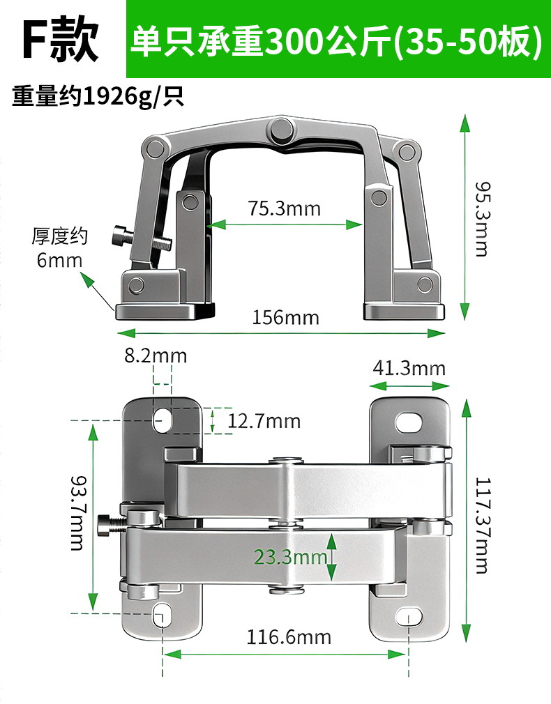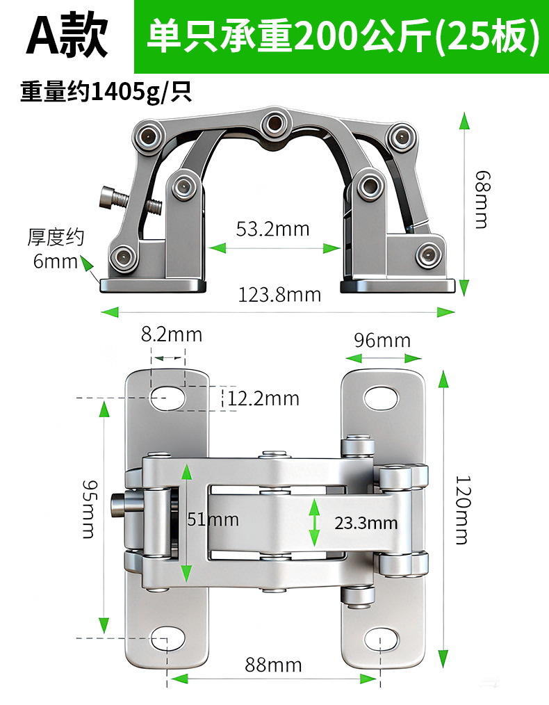 石材门隐形铰链重型暗门合页消防栓箱管井门厚门二维可调合页铰链